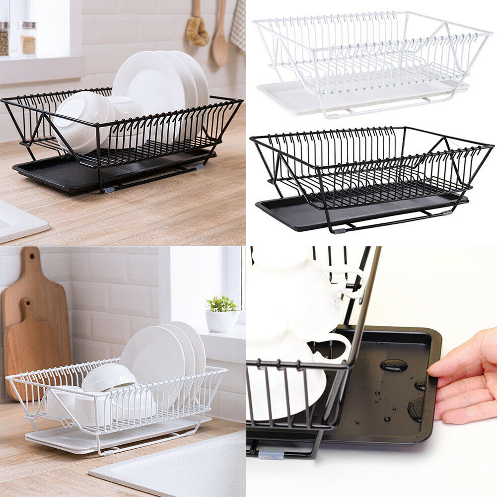 Dish Drainer Rack Kitchen Sink Basket Cutlery Draining Drip Tray Plates Holder
