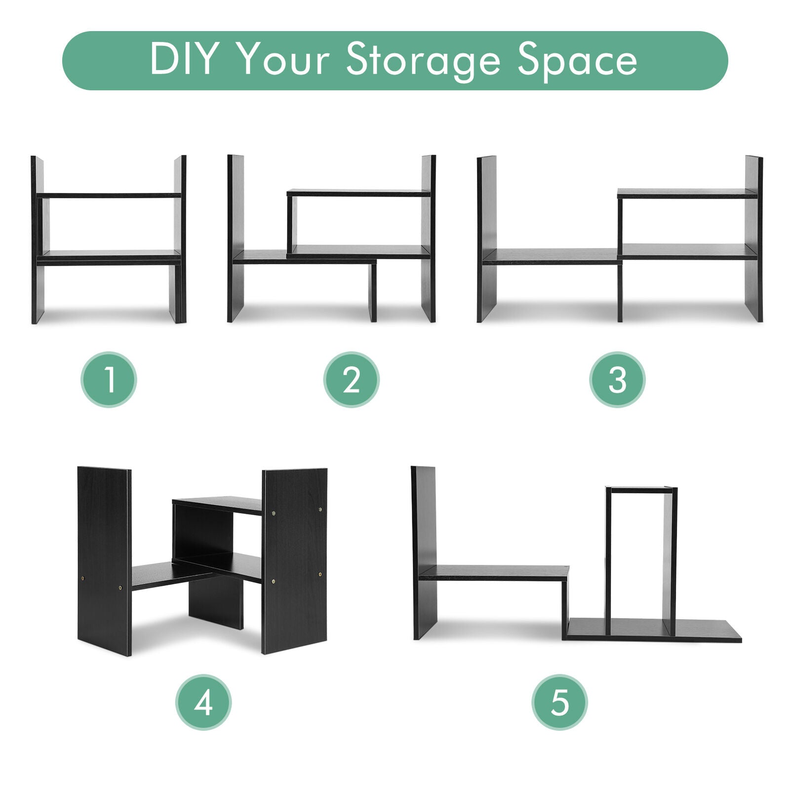 DIY Desktop Bookshelf Bookcase Organizer Desk Display Storage Rack Adjustable