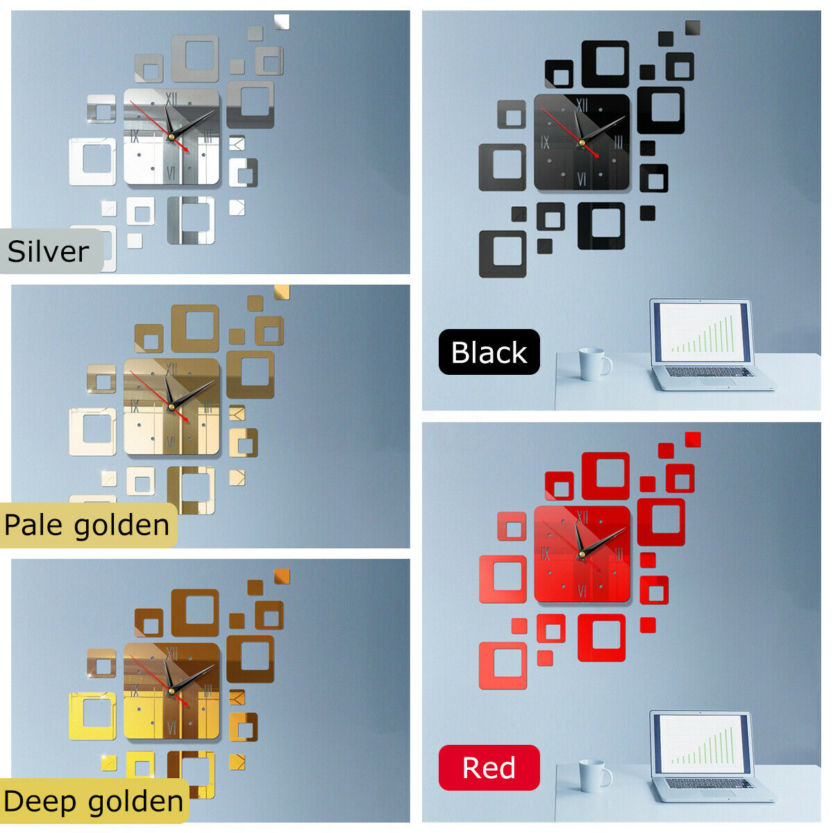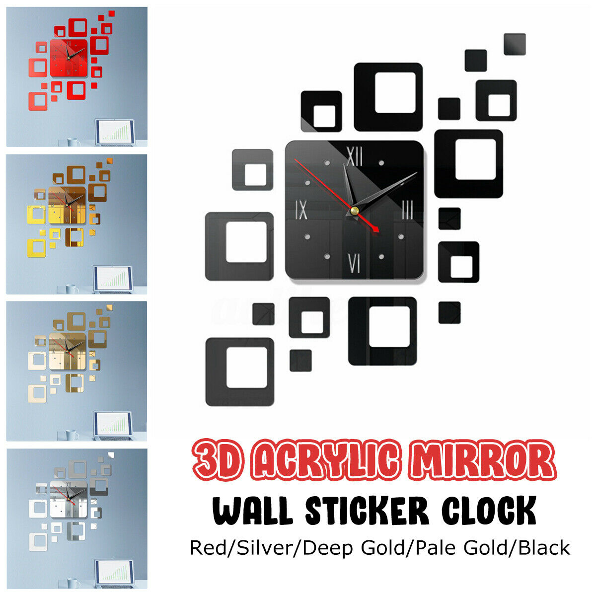 DIY Wall Clock 3D Crystal Mirror Living Room Sticker Watch Home Modern / j