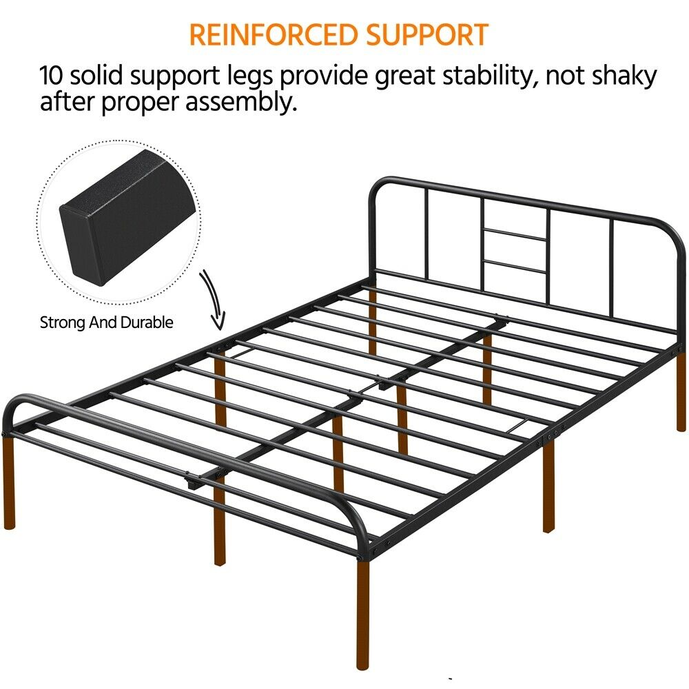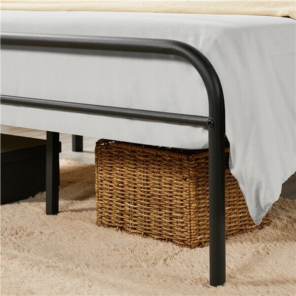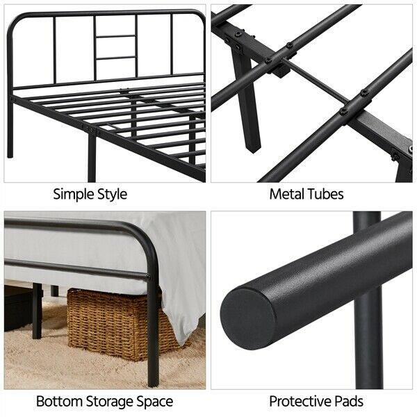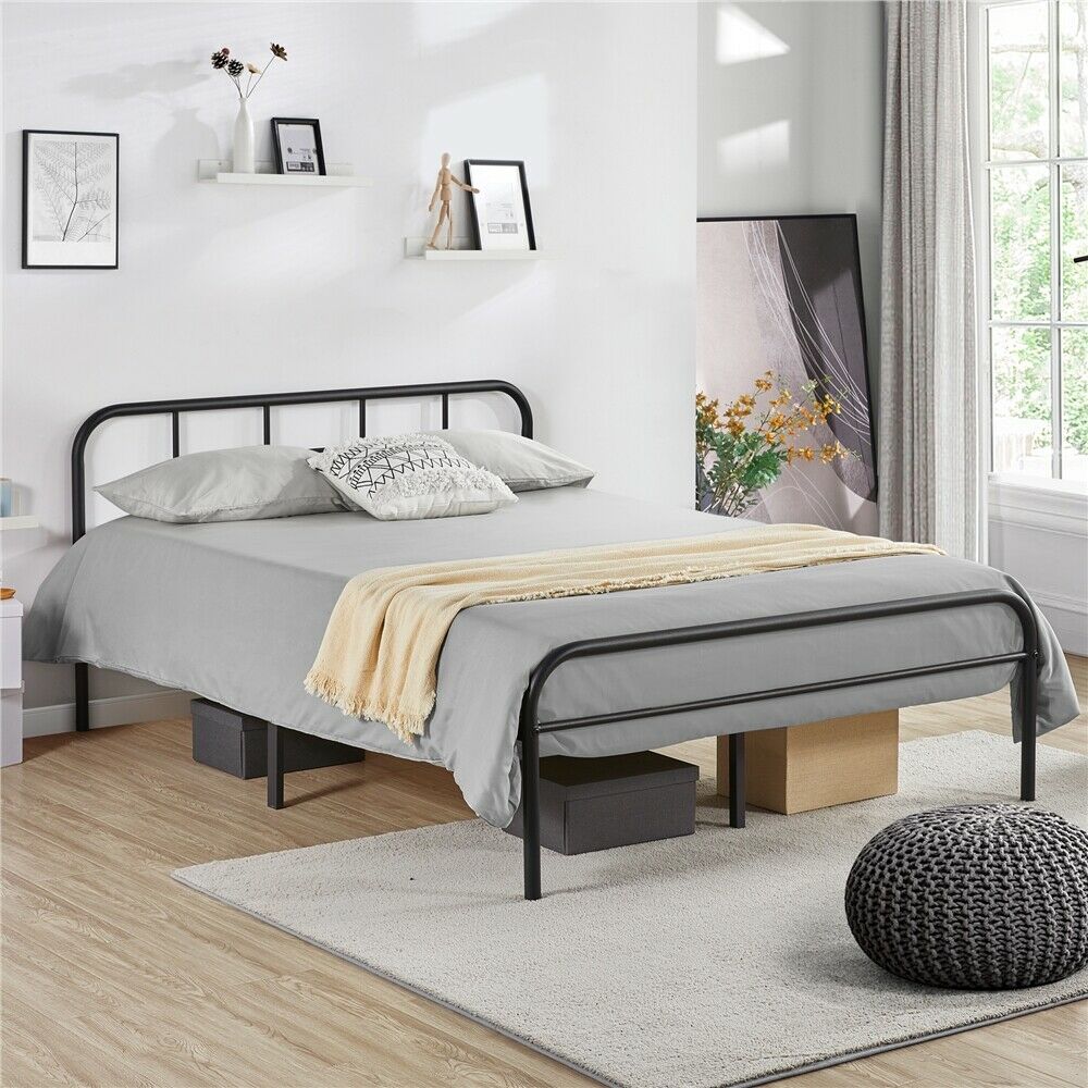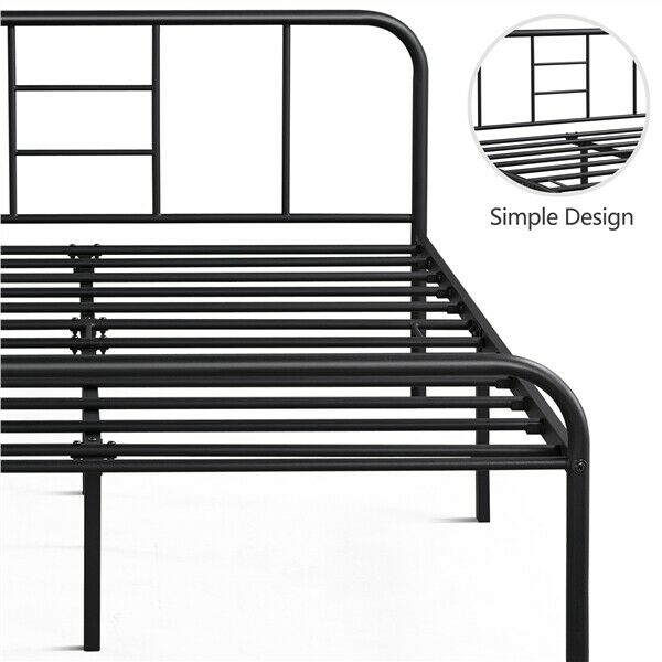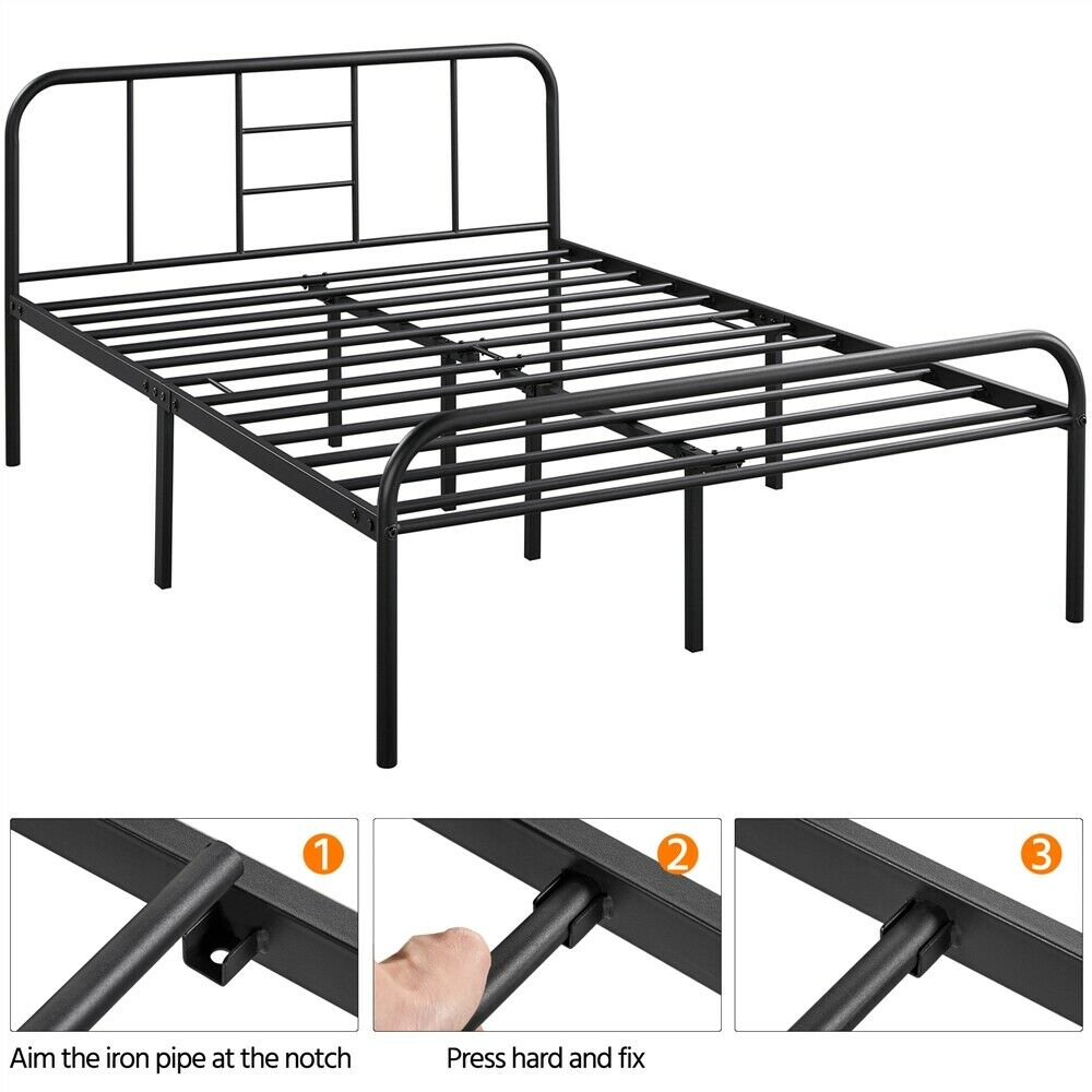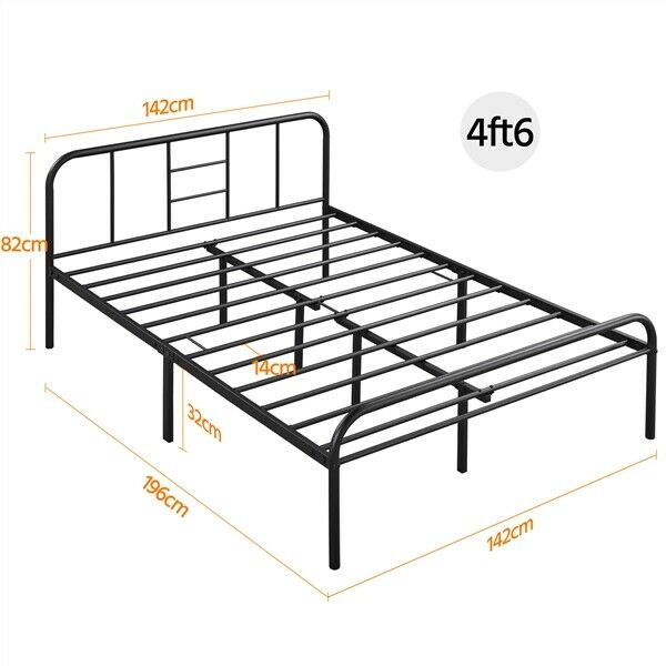 Double 4ft6 Bed Iron Frame Black Metal Platform Bed with High Headboard