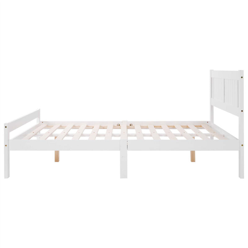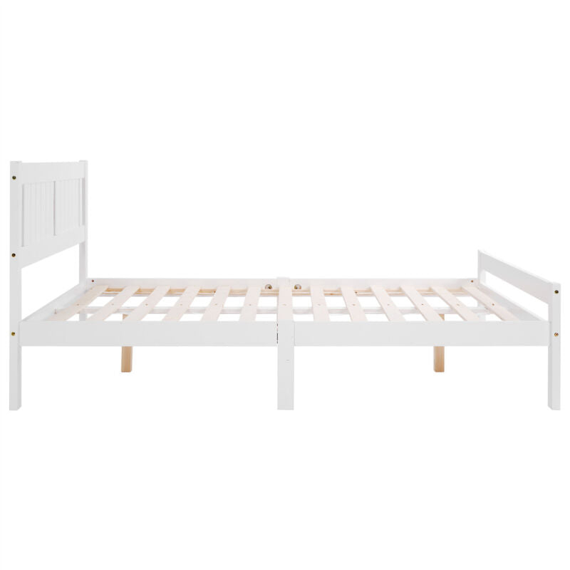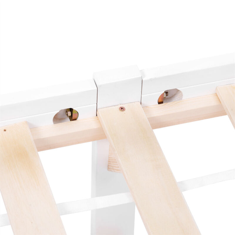 Double Bed White Solid Wooden Bed Frame Solid Wood For Adults, Kids, Teenagers