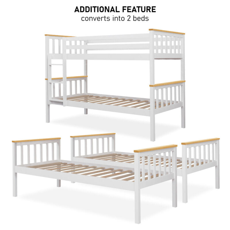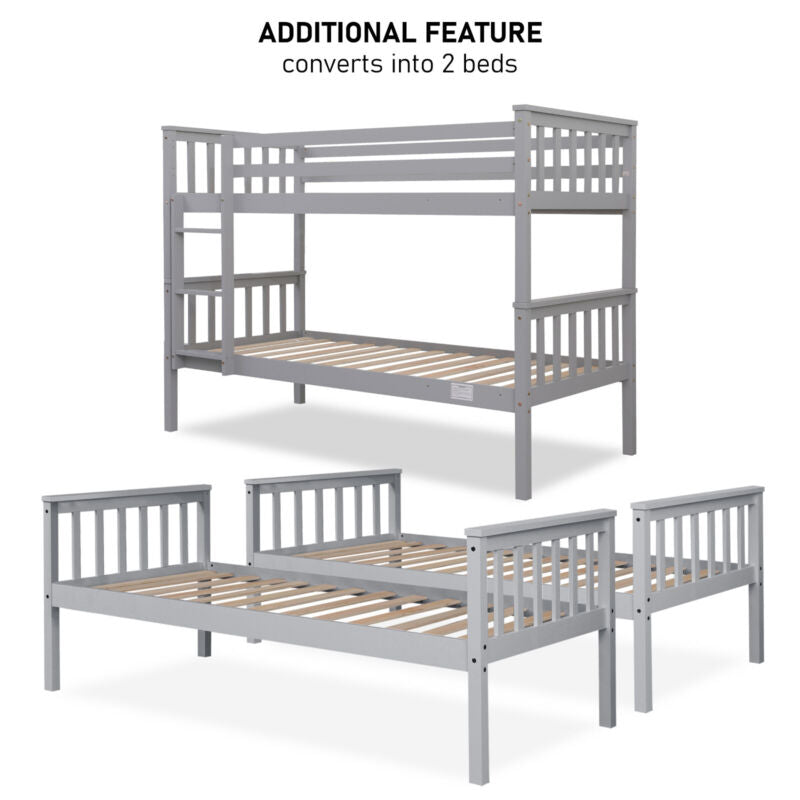 Double Bunk Bed For Kids Children 3FT Single Solid Wooden Bed Frame W/ Stairs