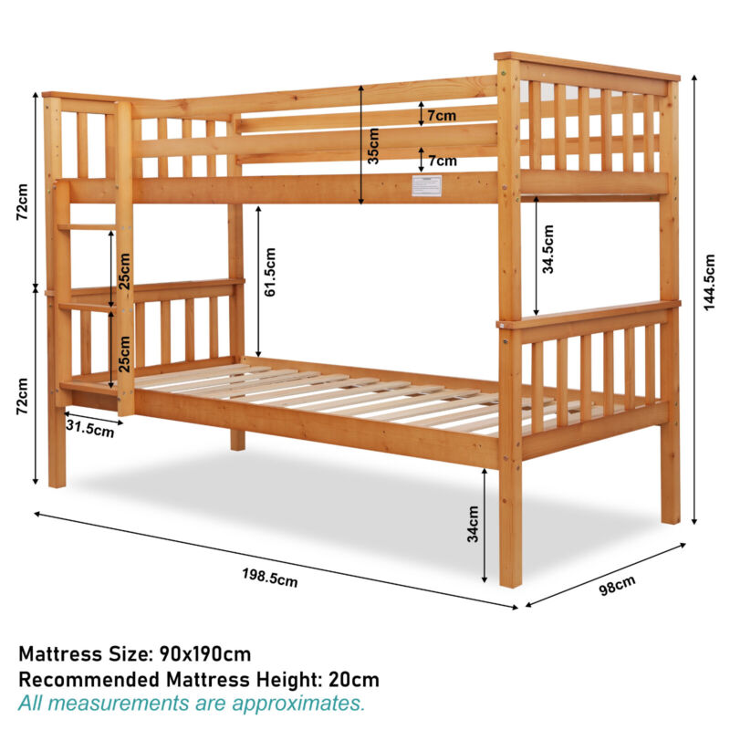 Double Bunk Beds For Kids Children 3ft Single Pine Wood Bed Frame With Mattress