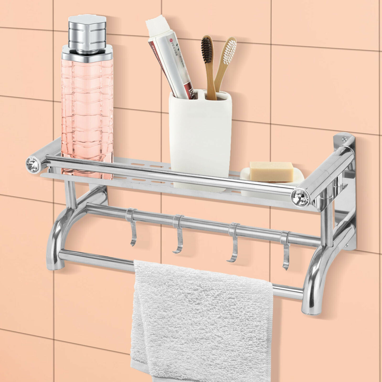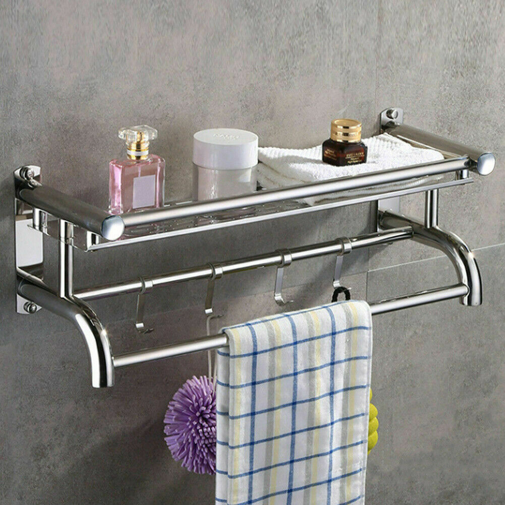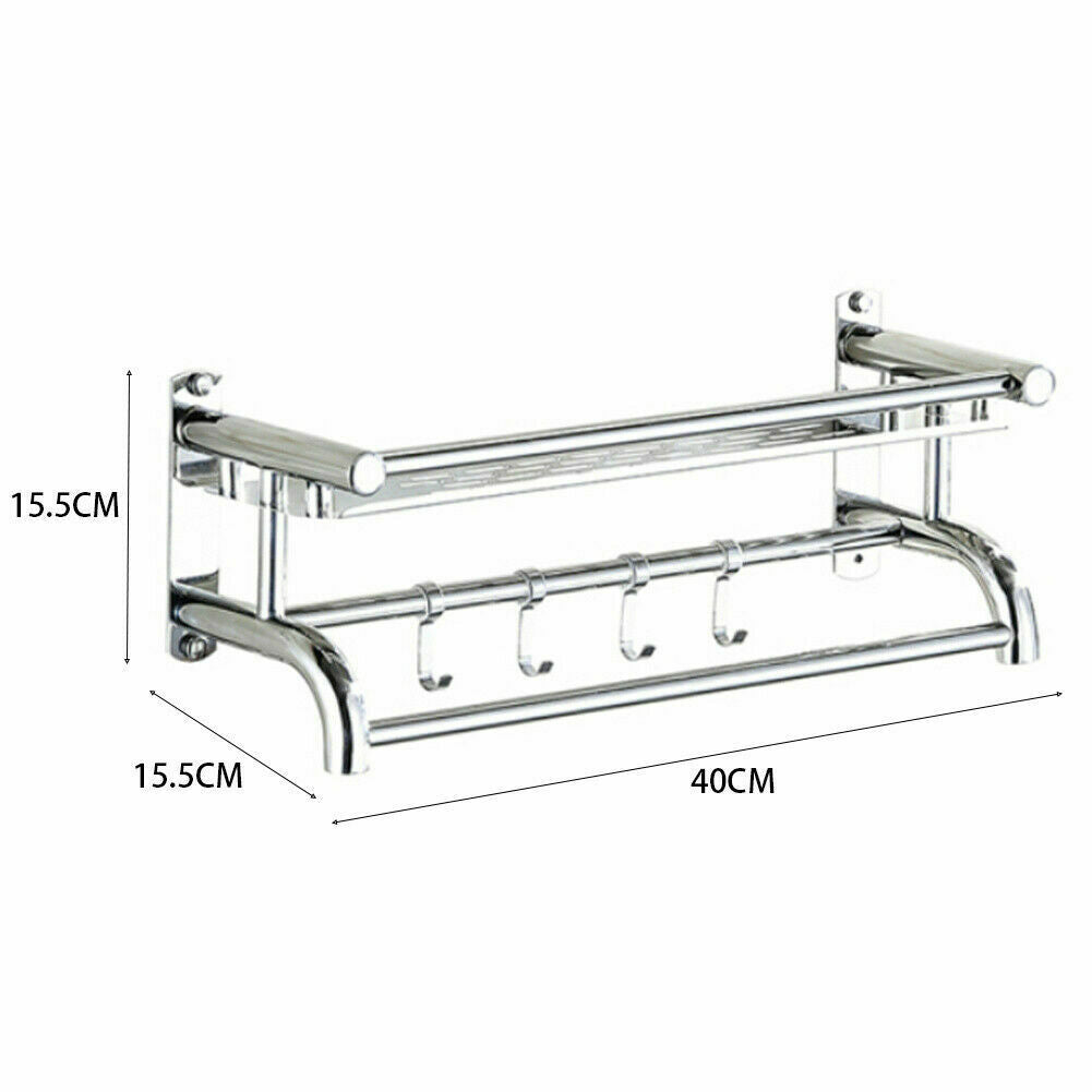 Double Chrome Towel Rail Holder Wall Mounted Bathroom Rack Stainless Steel UK
