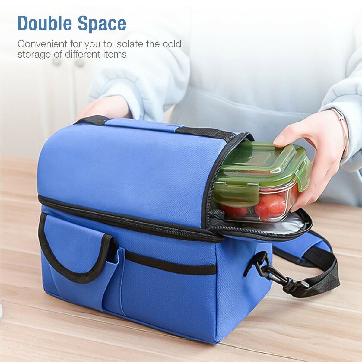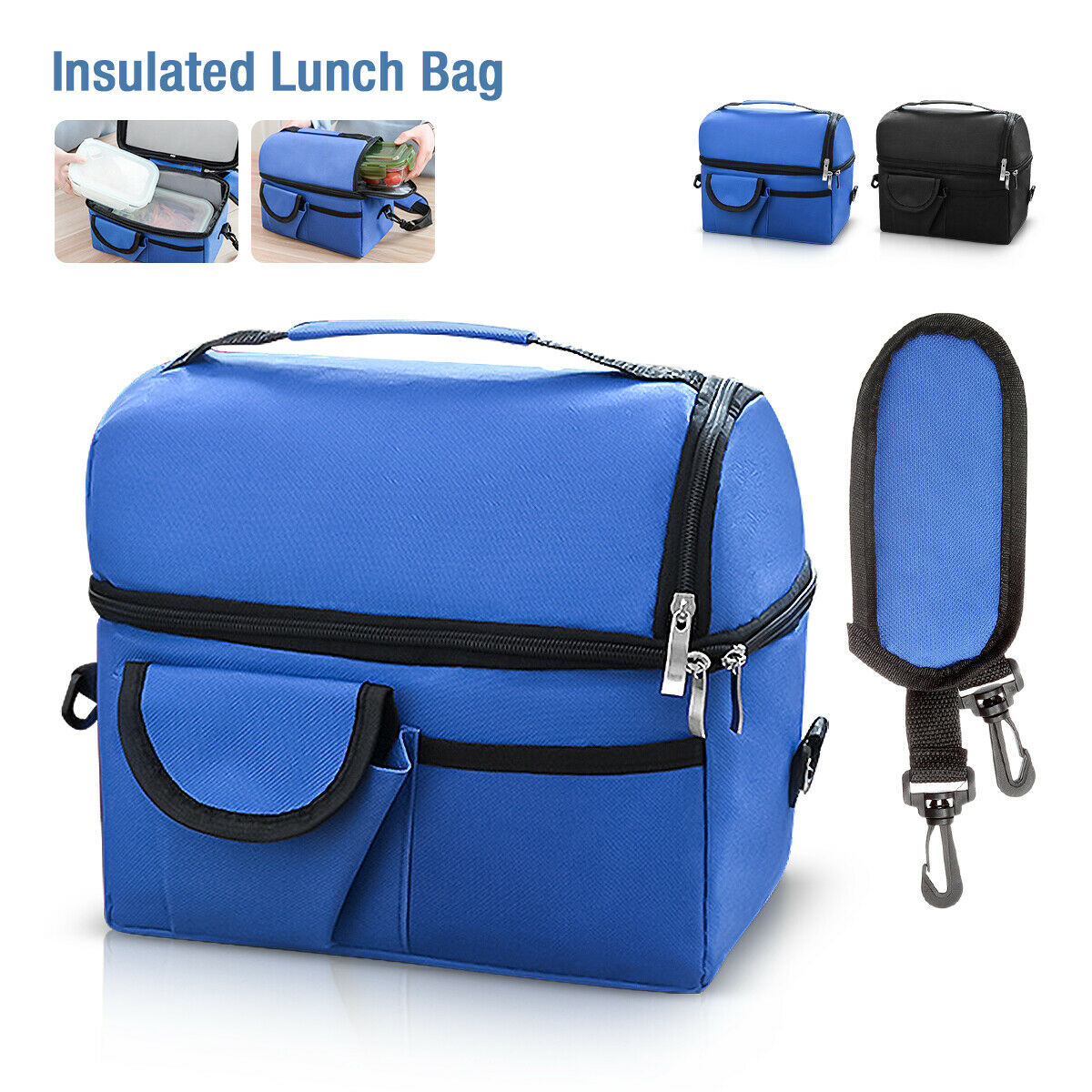 Double Deck Insulated Lunch Box Removable Shoulder Strap for Men /Women/Kids UK