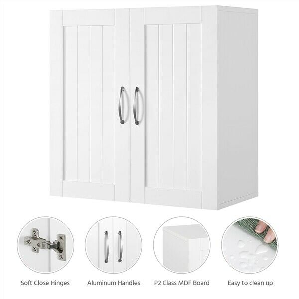 Double Door Bathroom Wall Cabinet Storage Cupboard w/3 Tiers Adjustable Shelves