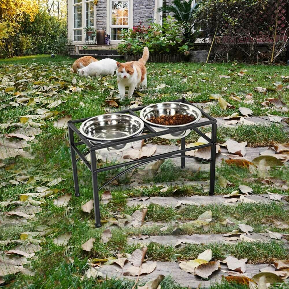 Double Elevated Dog Pet Feeder Bowl Stainless Steel Food Water Stand Tray UK