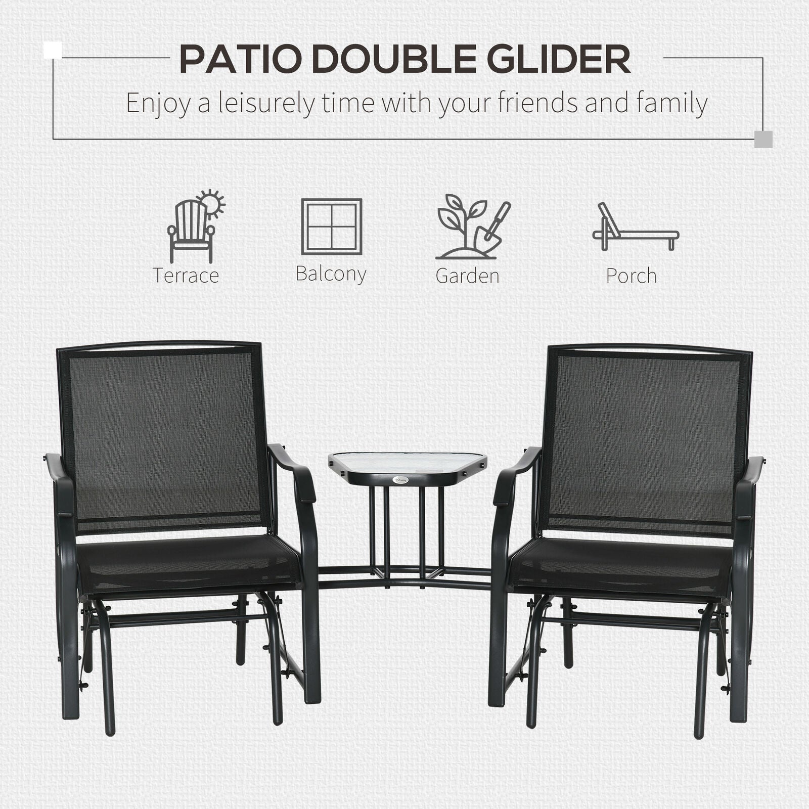 Double Glider Companion Rocking Chairs Loveseat Garden Table