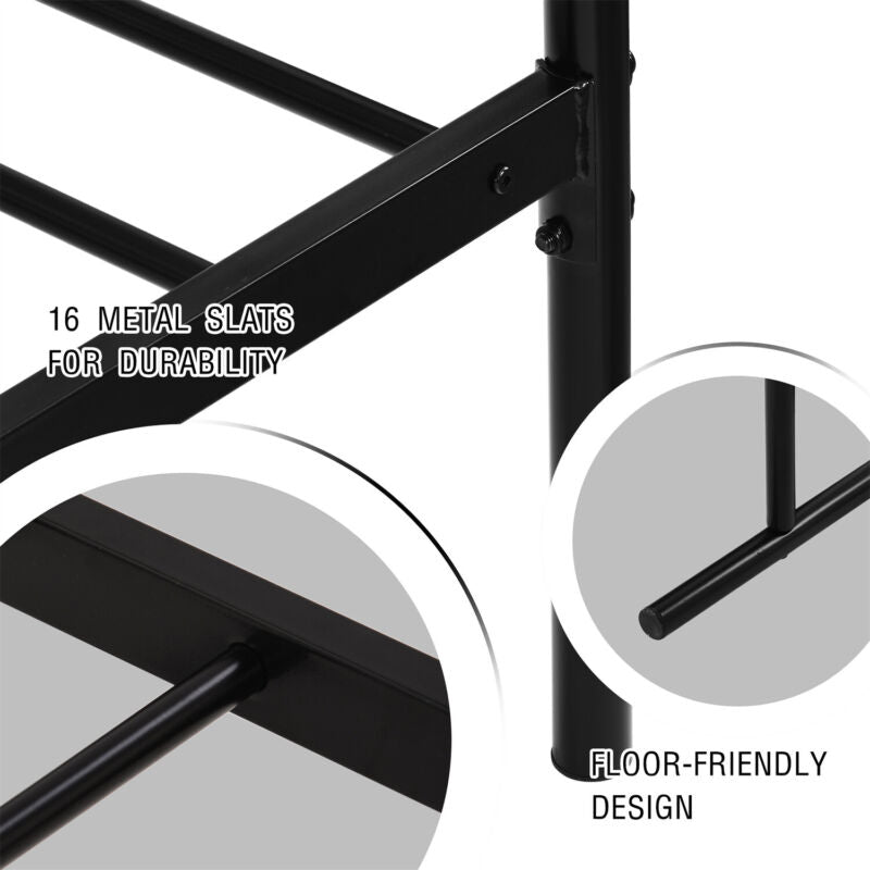 Double Metal Bed Frame w/ High Headboard and Footboard Black for Kids Adults QR
