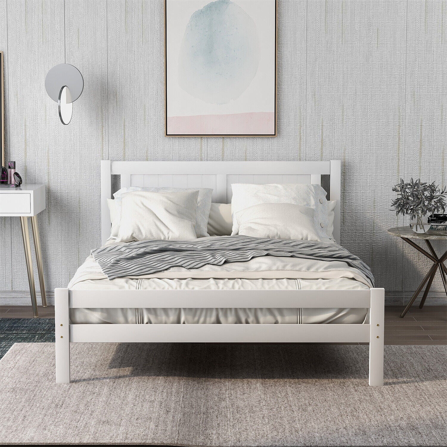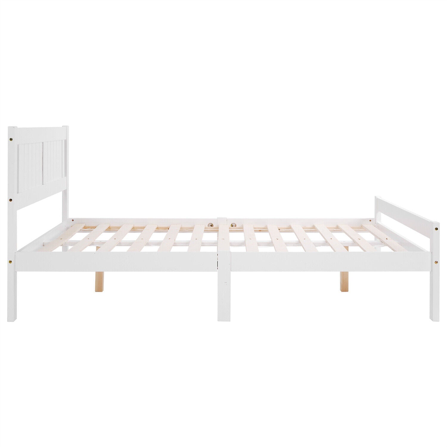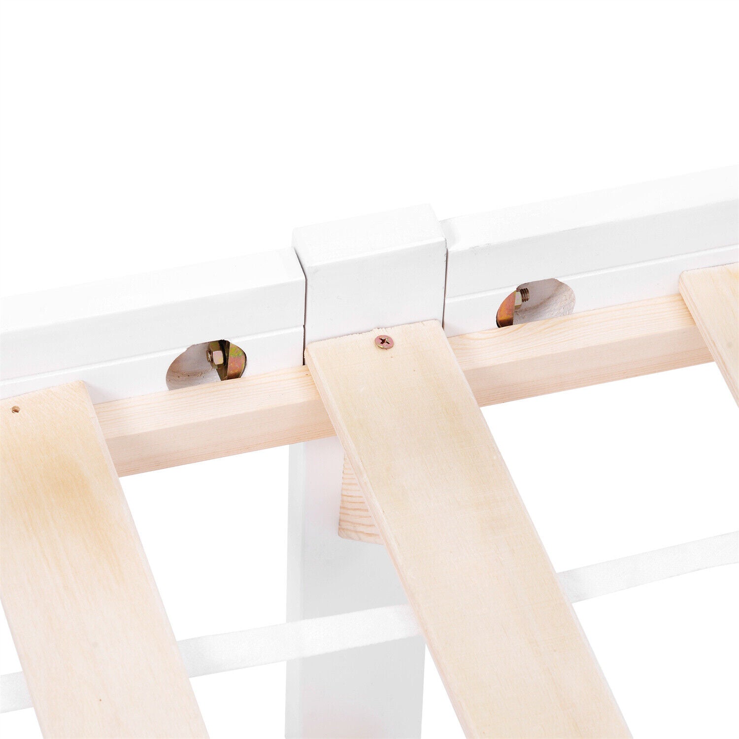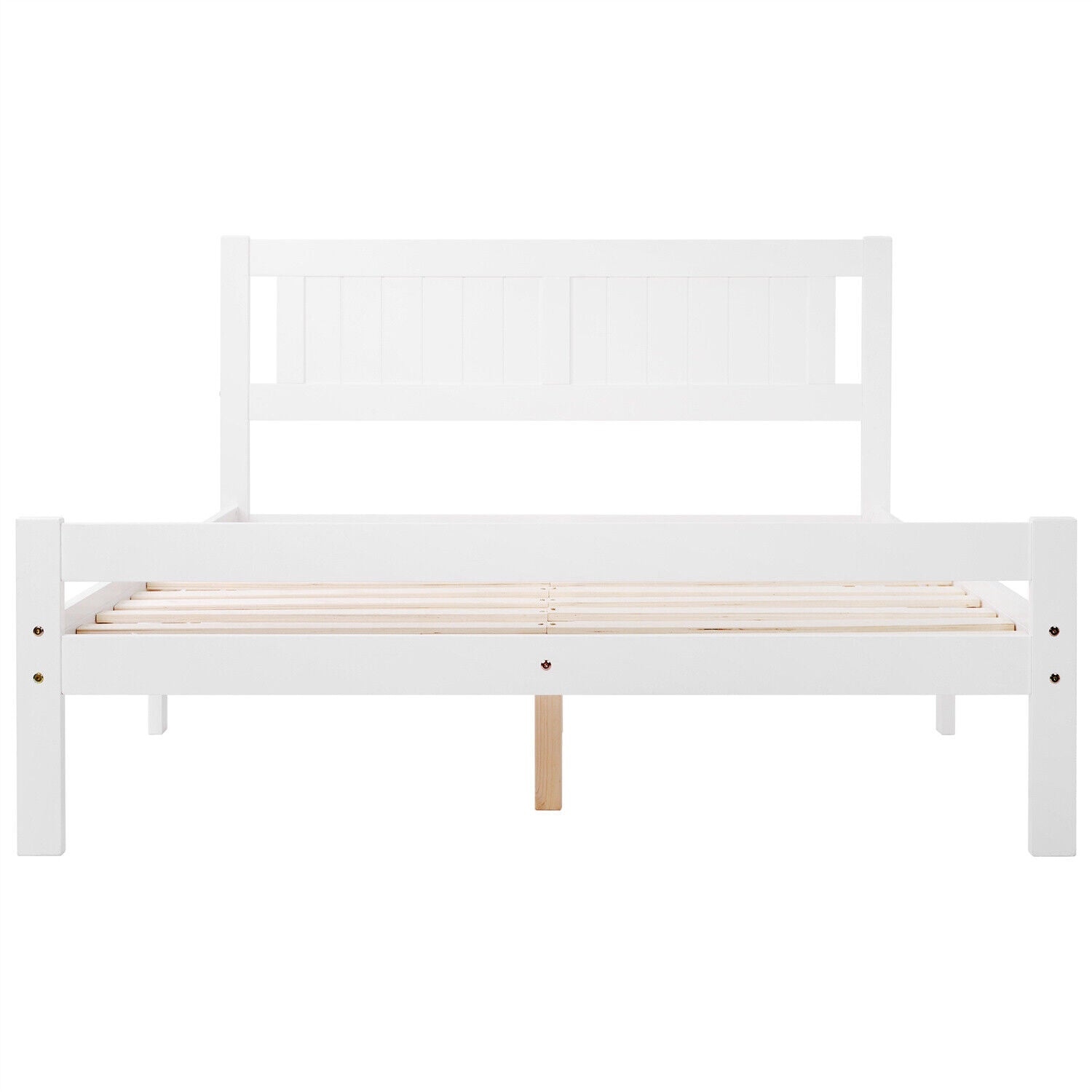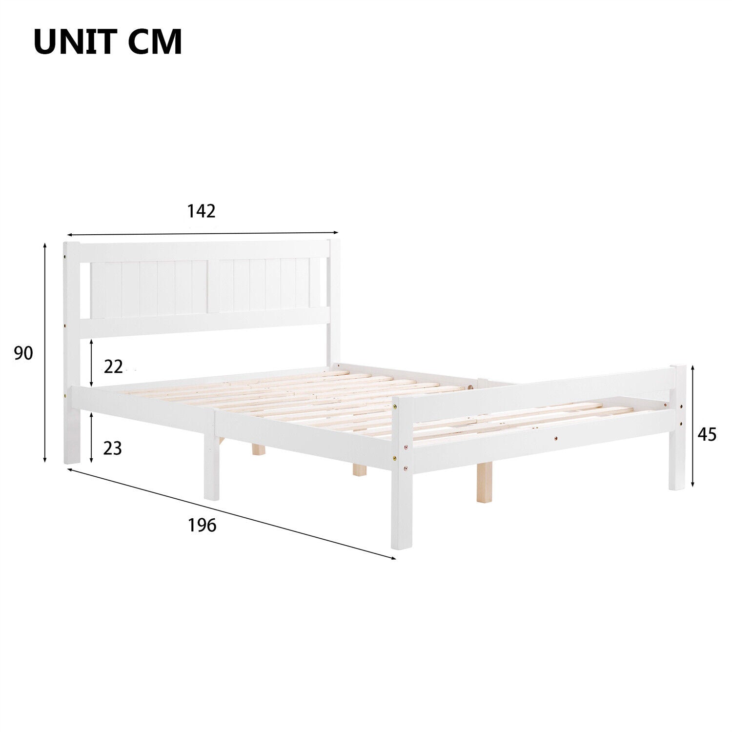 Double Size Bed 4ft6 Wooden Bed Frame White Solid Pine for Adults Kids Teenagers