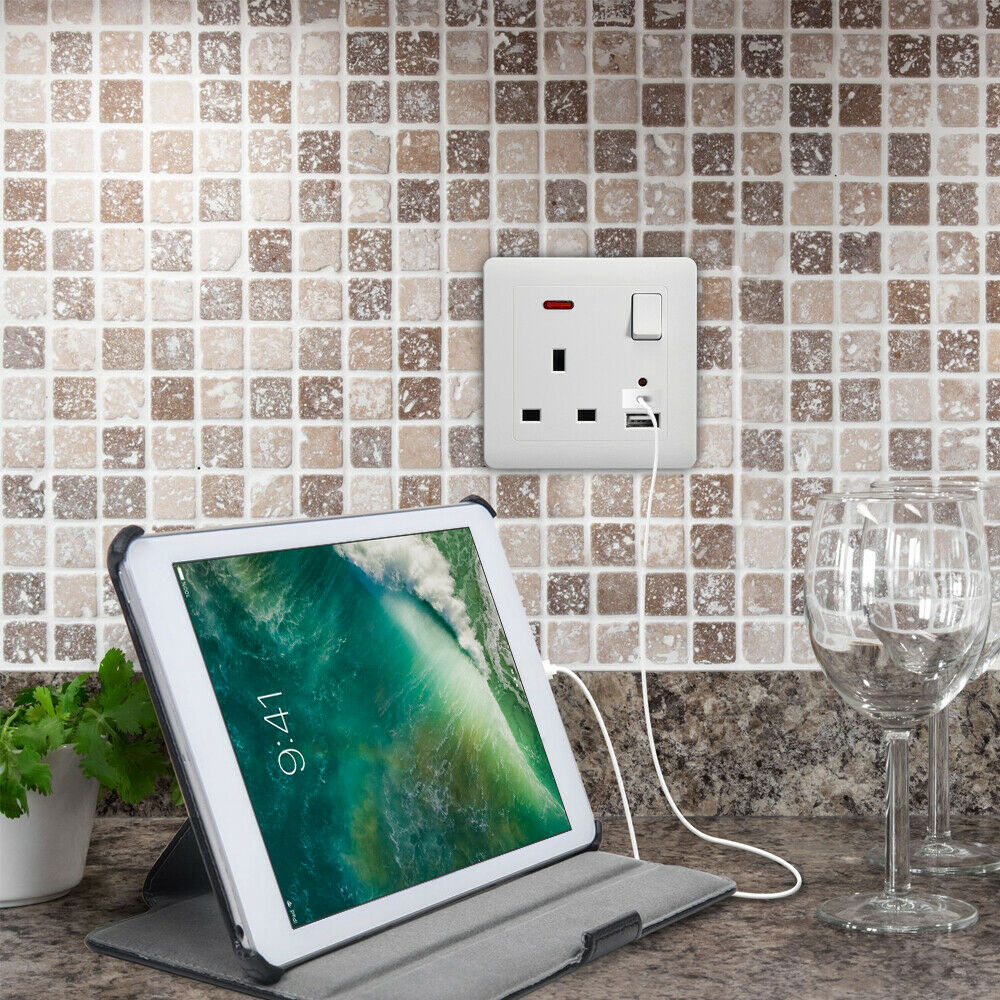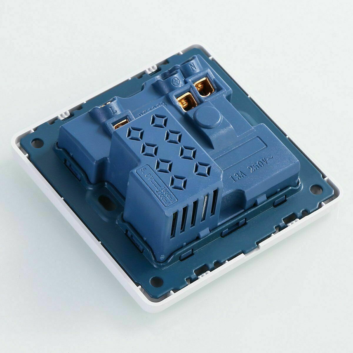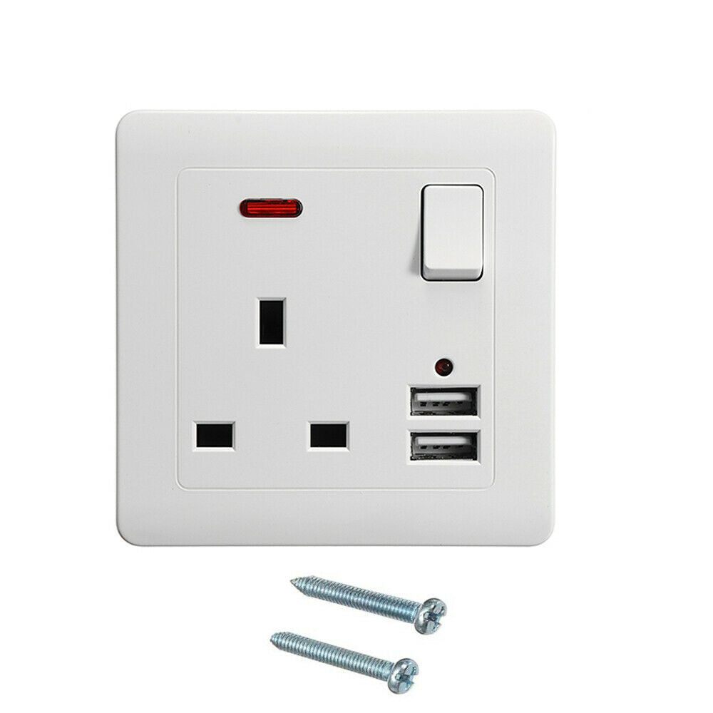 Double Wall Plug Socket 2 Gang 13A w/ USB Charger Port Outlets Black/White Plate