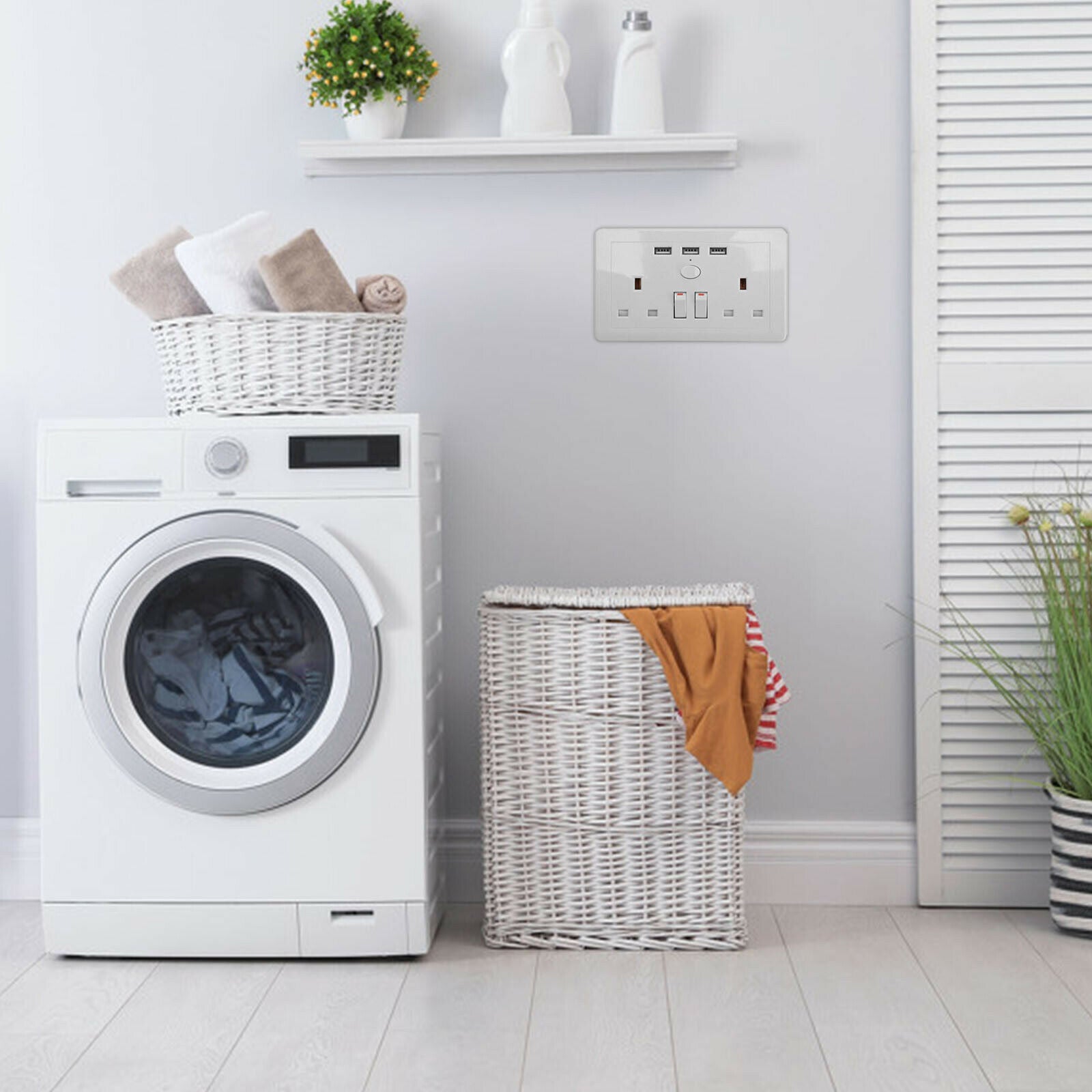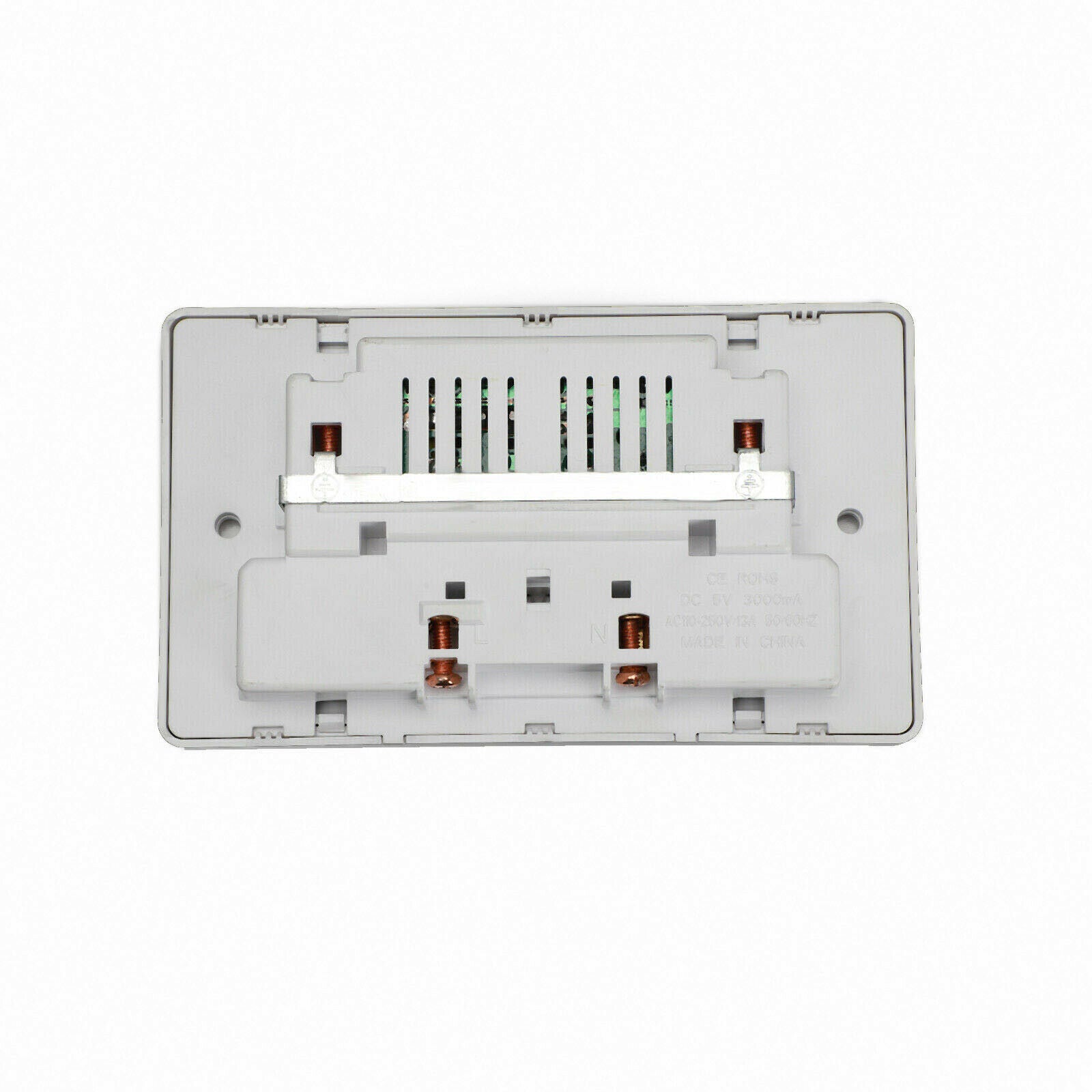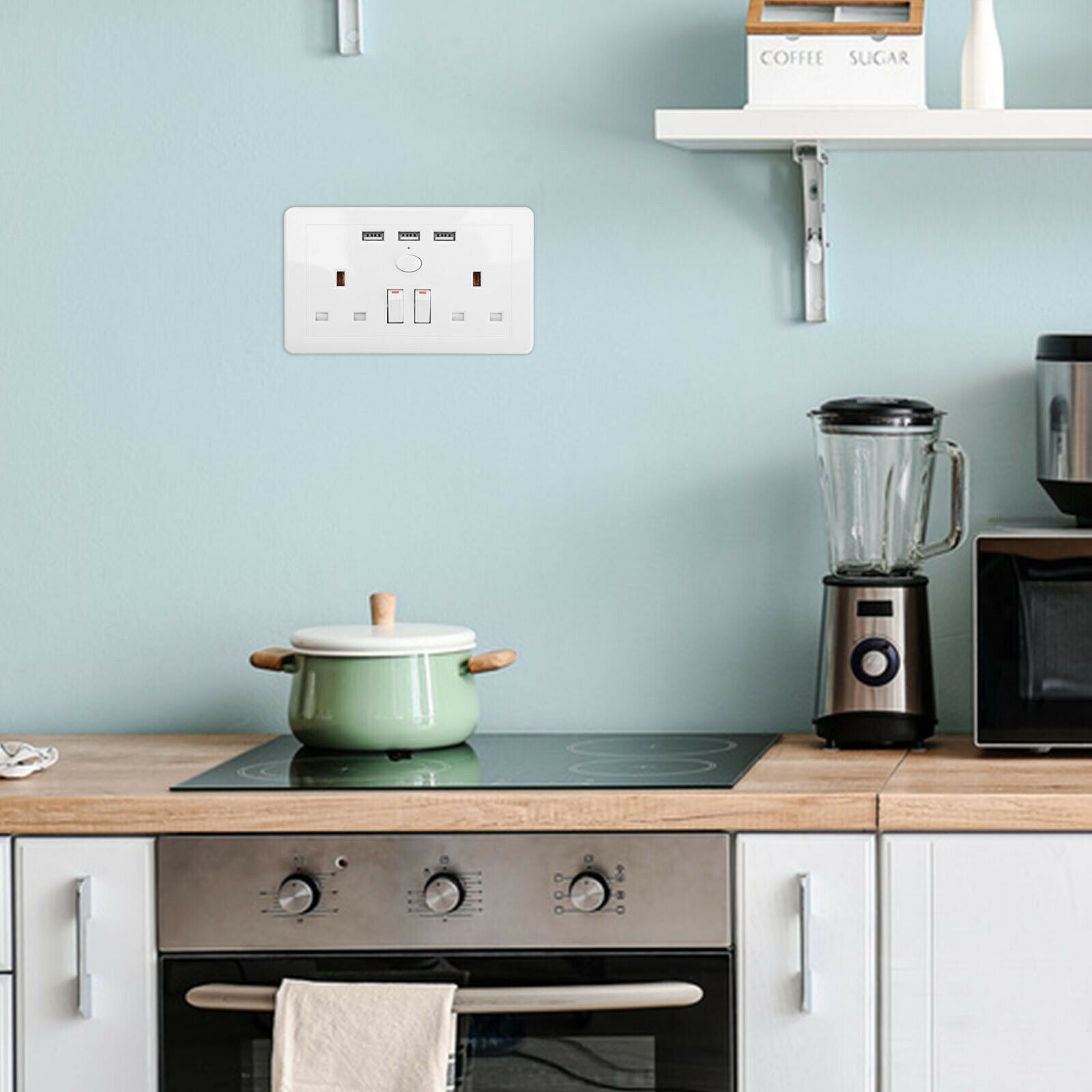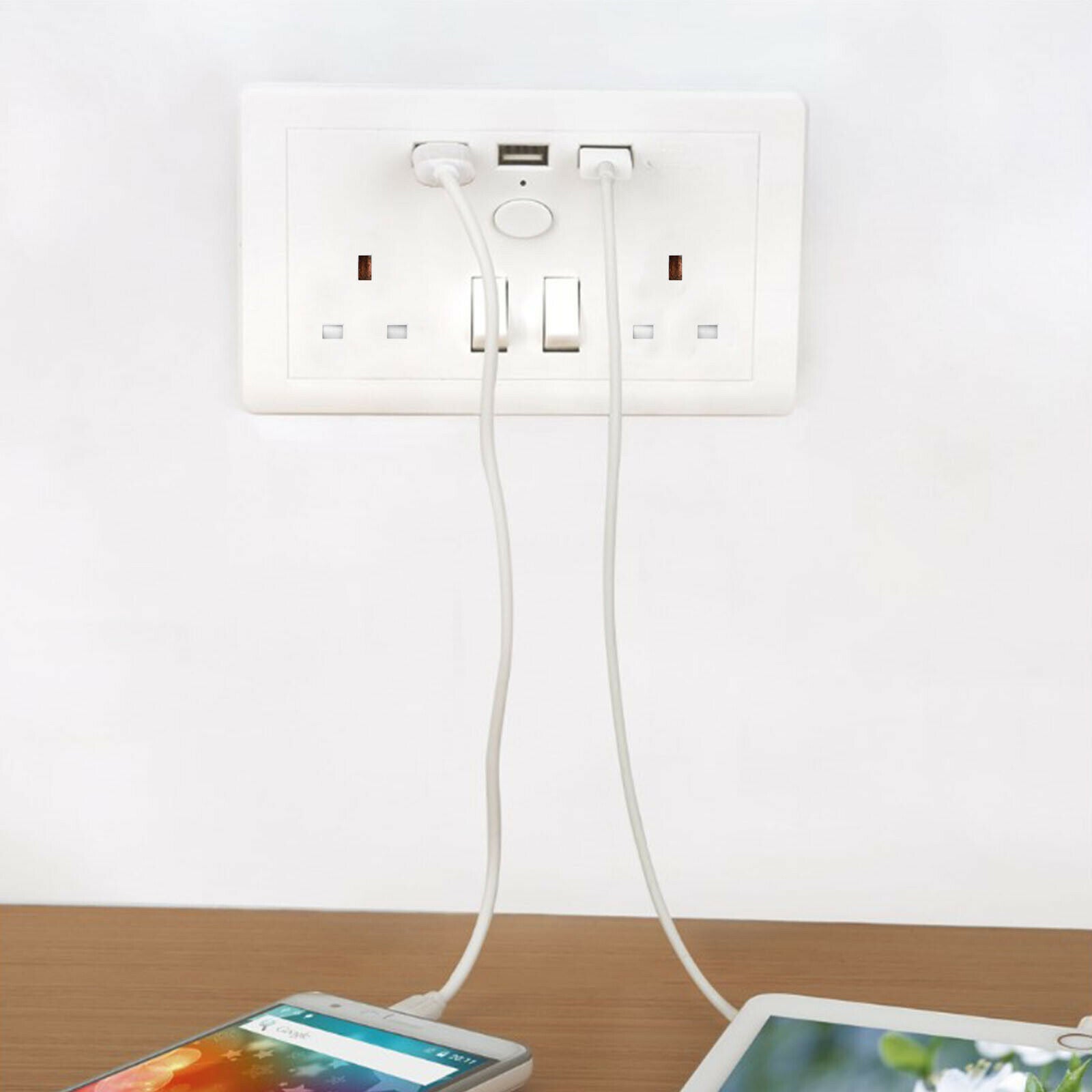 Double Wall UK Plug Socket 2 Gang 13A + 3 USB Charger Port Outlets Plate UK