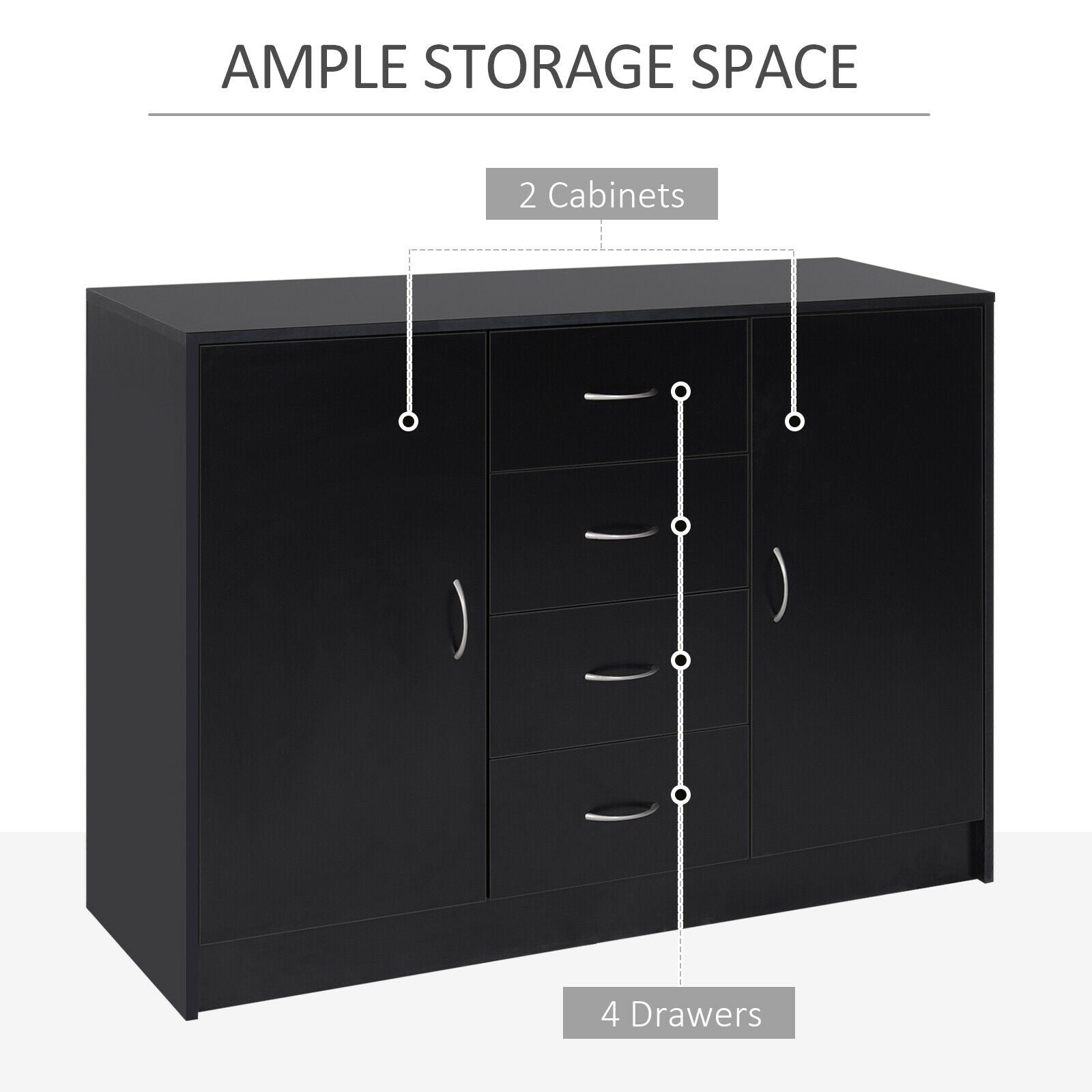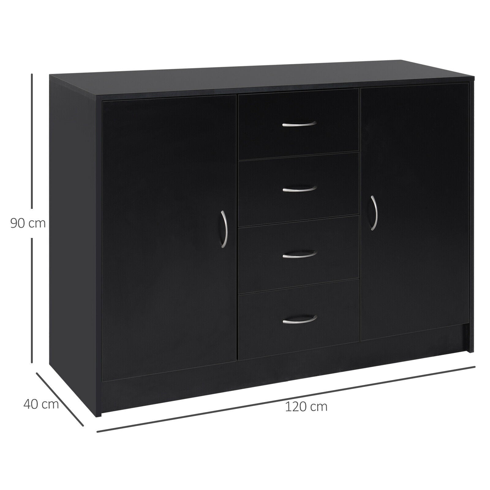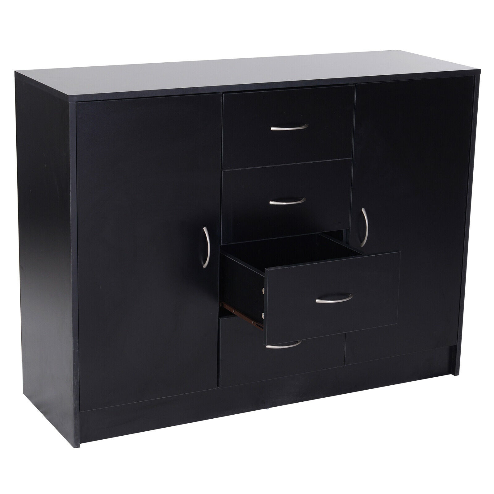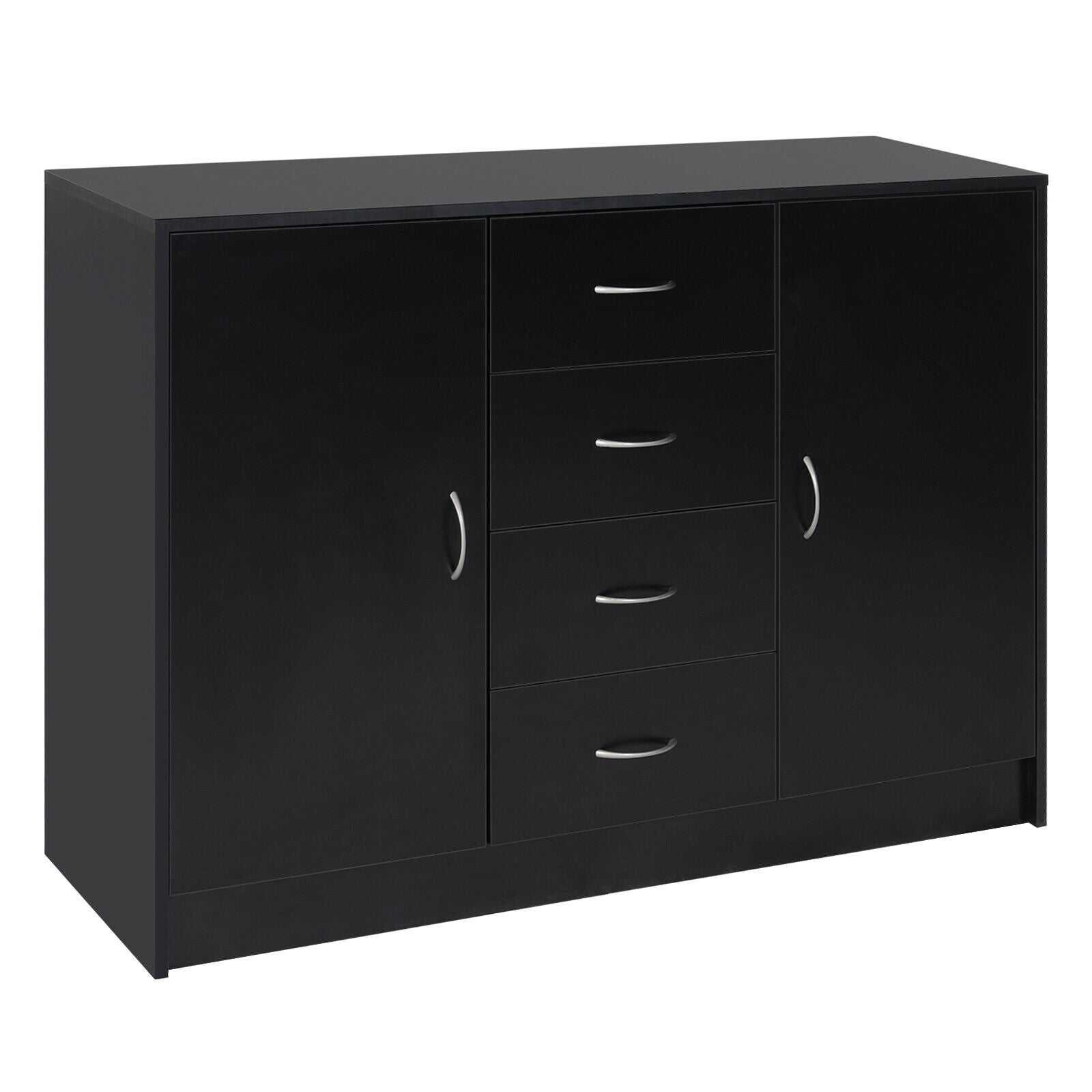 Drawer Cabinet Storage Standing Cupboard Unit Chest Organizer Doors Black