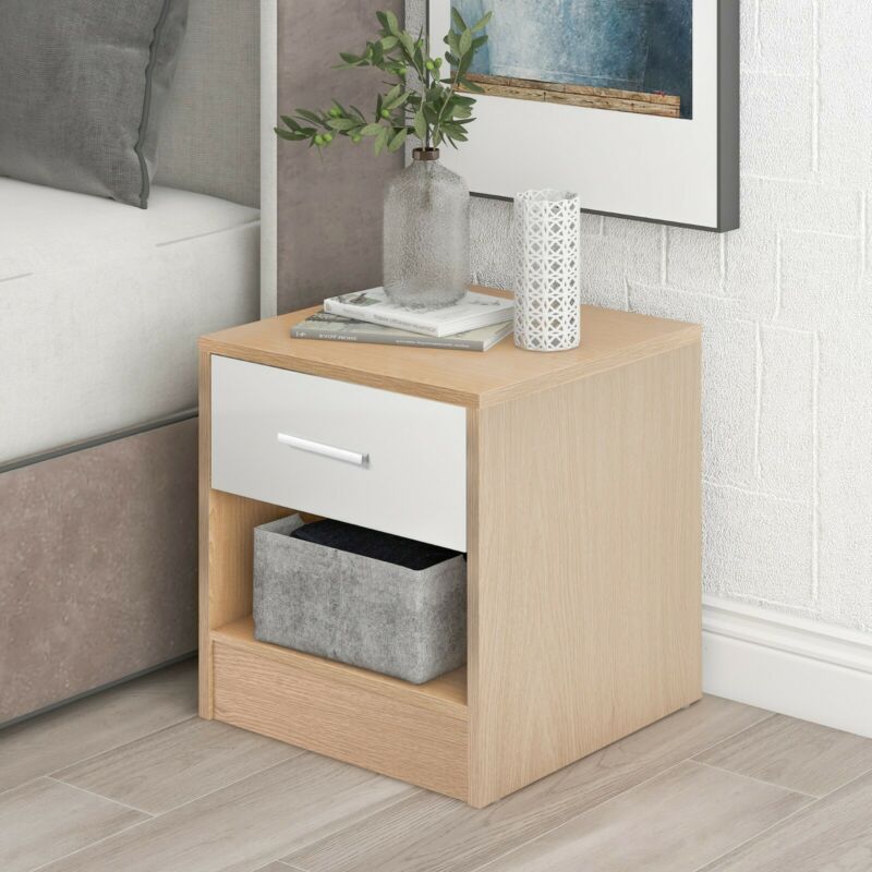 Drawer Wooden Bedside Table Cabinet Nightstand Storage Bedroom Furniture UK