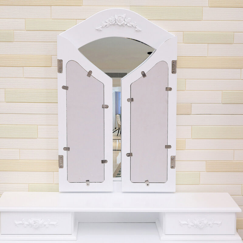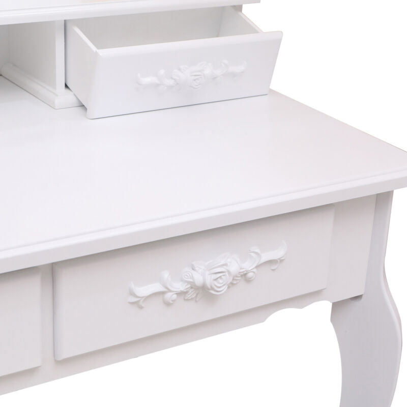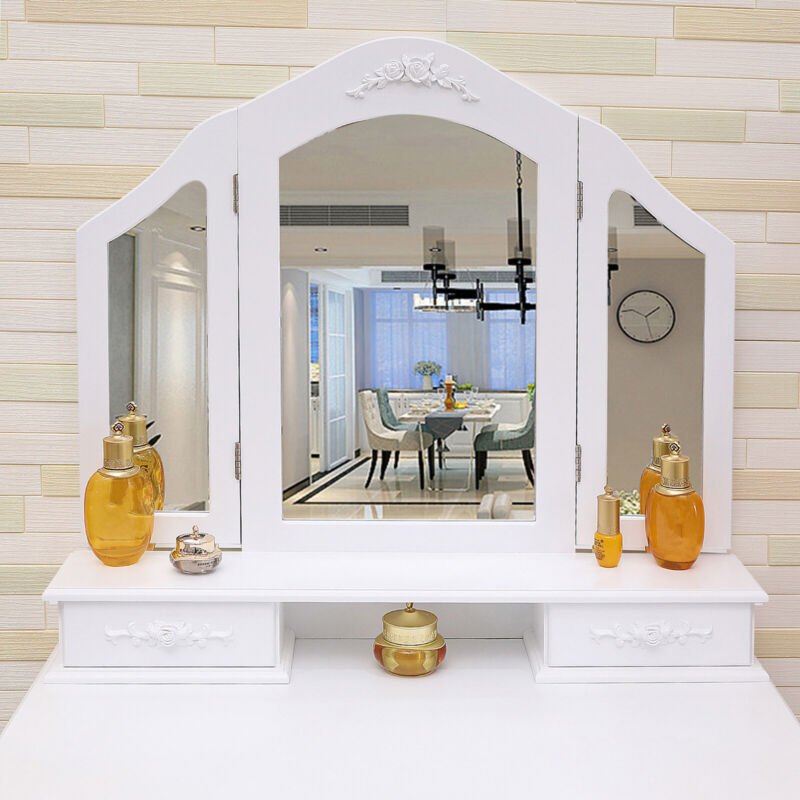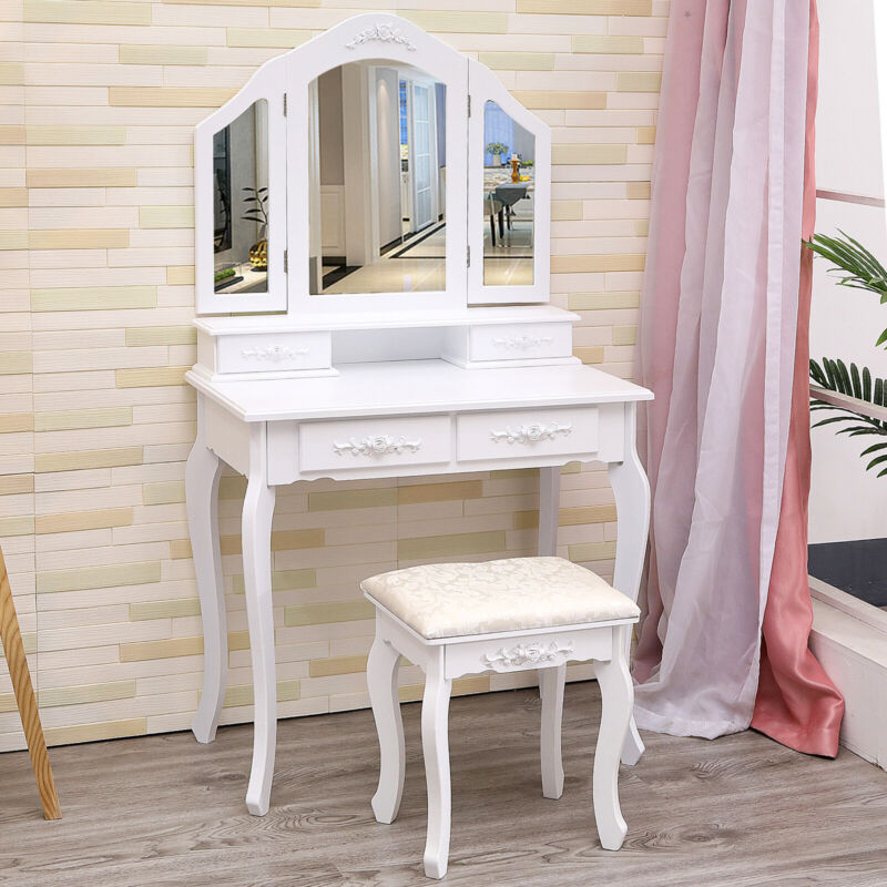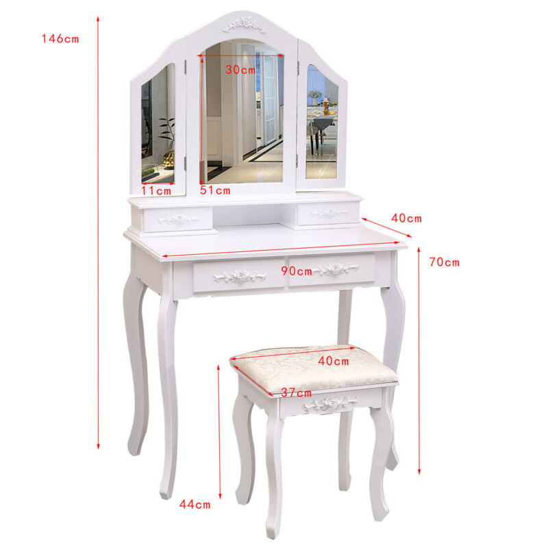 Dressing Table Bedroom 4 Drawer Storage Vanity Desk Trifold Mirror with Stool
