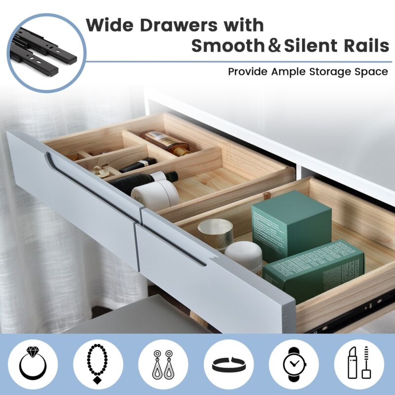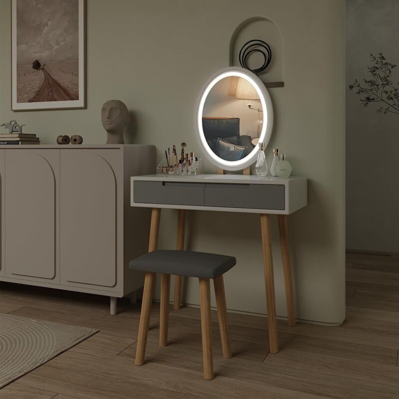 Dressing Table Makeup Desk LED Mirror Vanity Set 2 Drawers Organizer Stool Grey