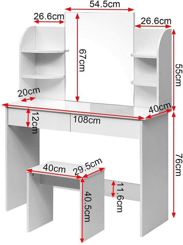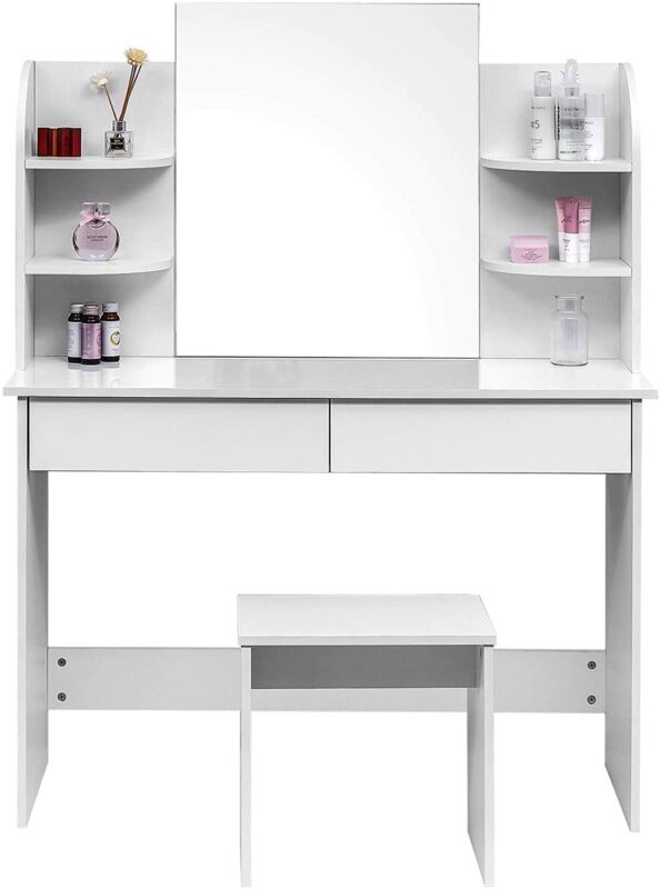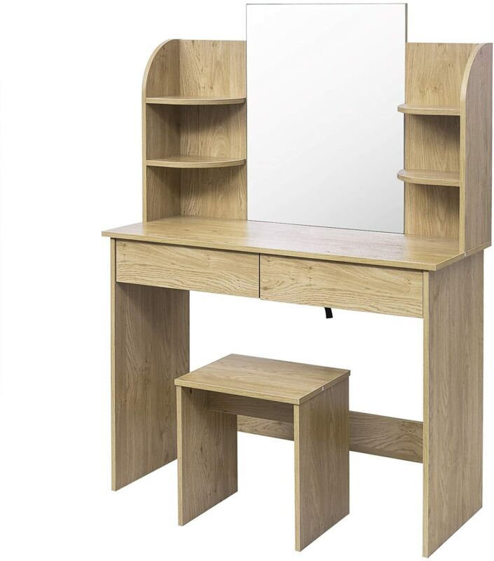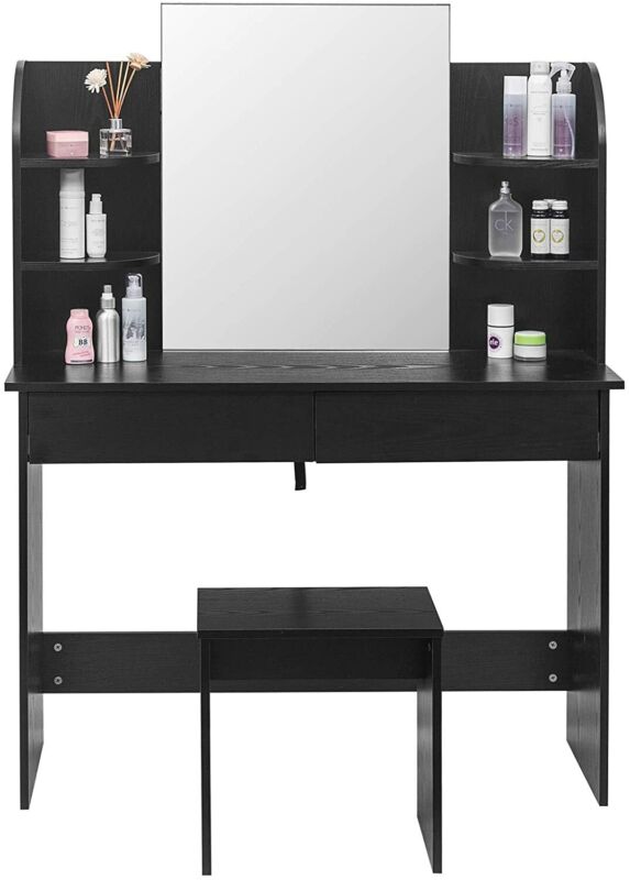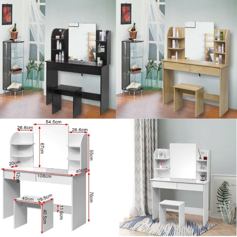 Dressing Table Mirror Makeup Table Bedroom Dresser Set 2 Drawers 4 Shelves