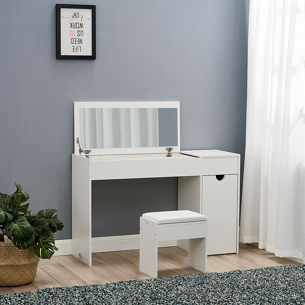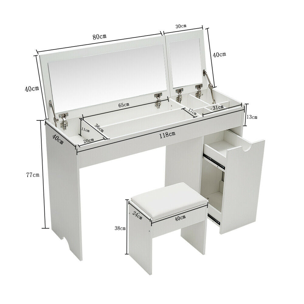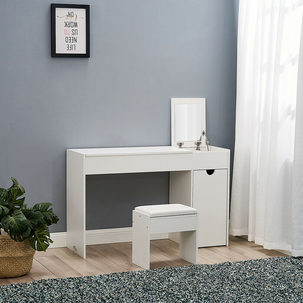Dressing Table Set Cushioned Stool Flip-up Mirror Cabinet Office Desk Bedroom UK