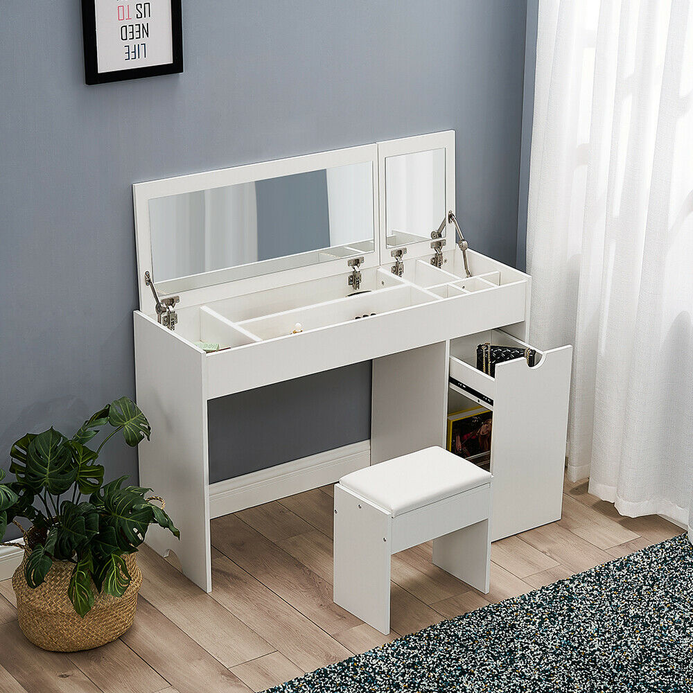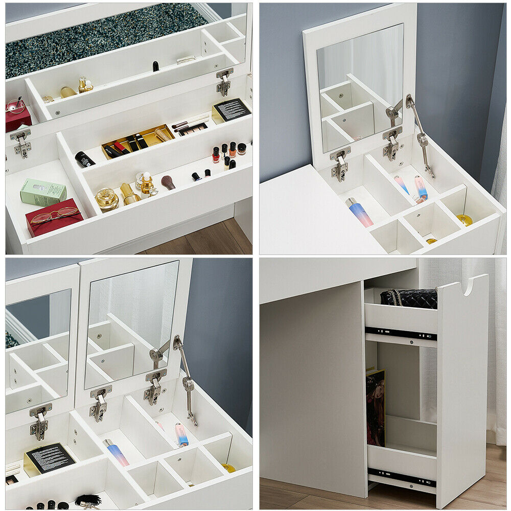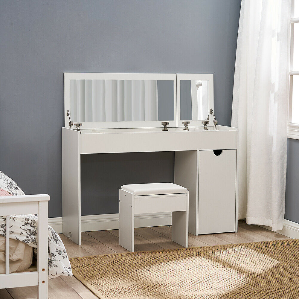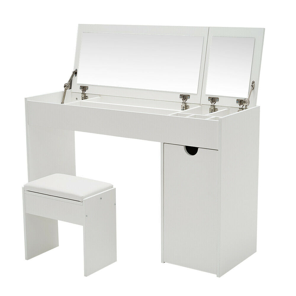 Dressing Table Set Cushioned Stool Flip-up Mirror Cabinet Office Desk Bedroom UK