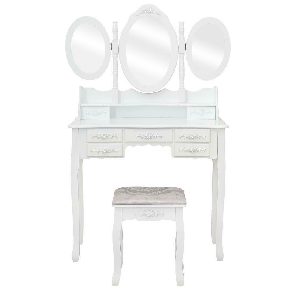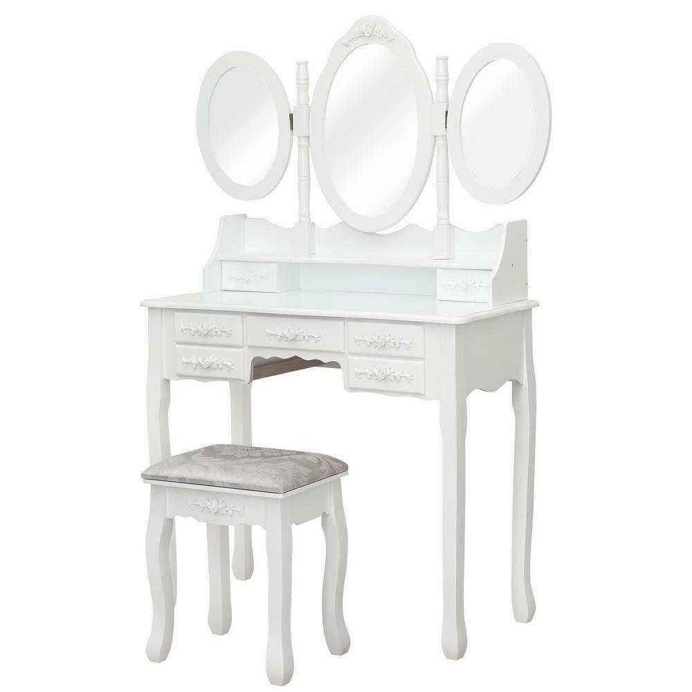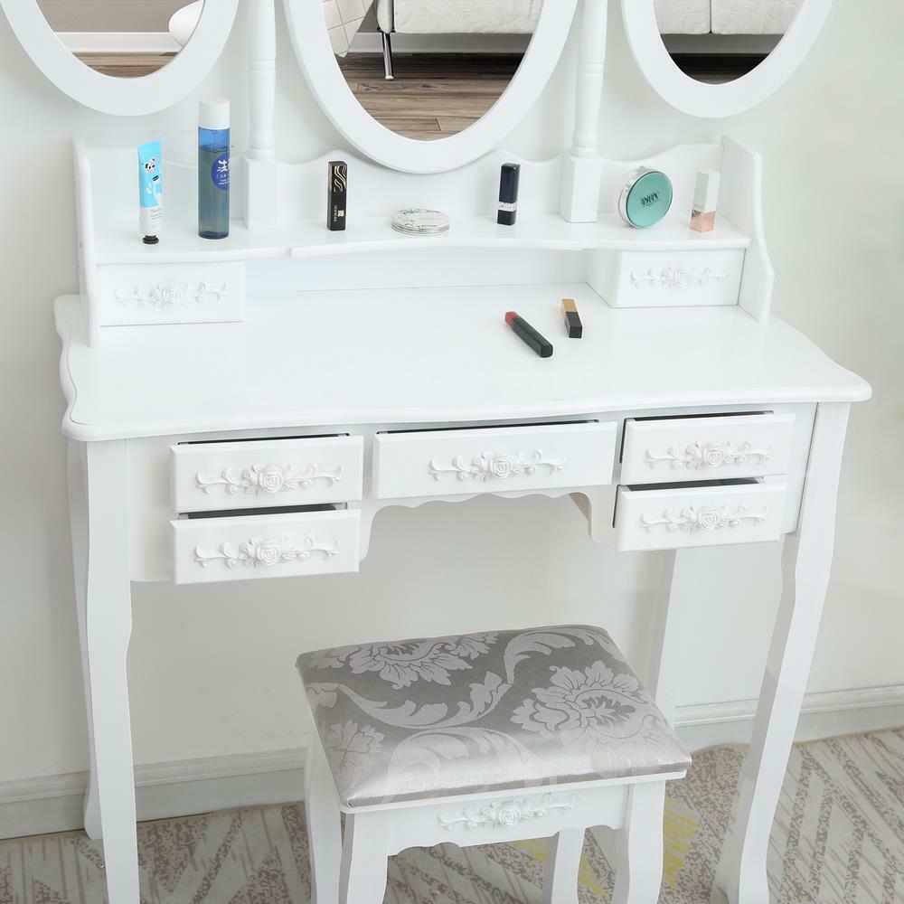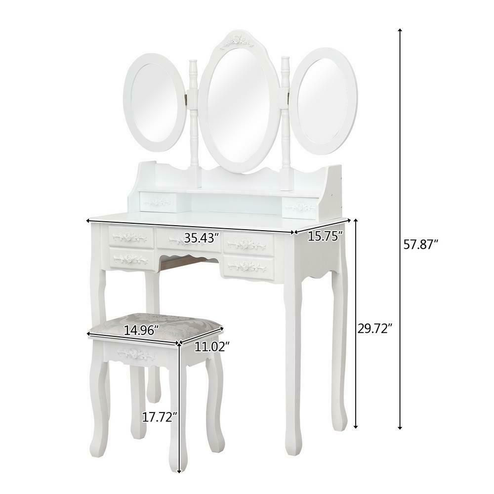 Dressing Table Set With Stool 7 Drawers 3 Mirrors Jewelry Makeup Desk Wood