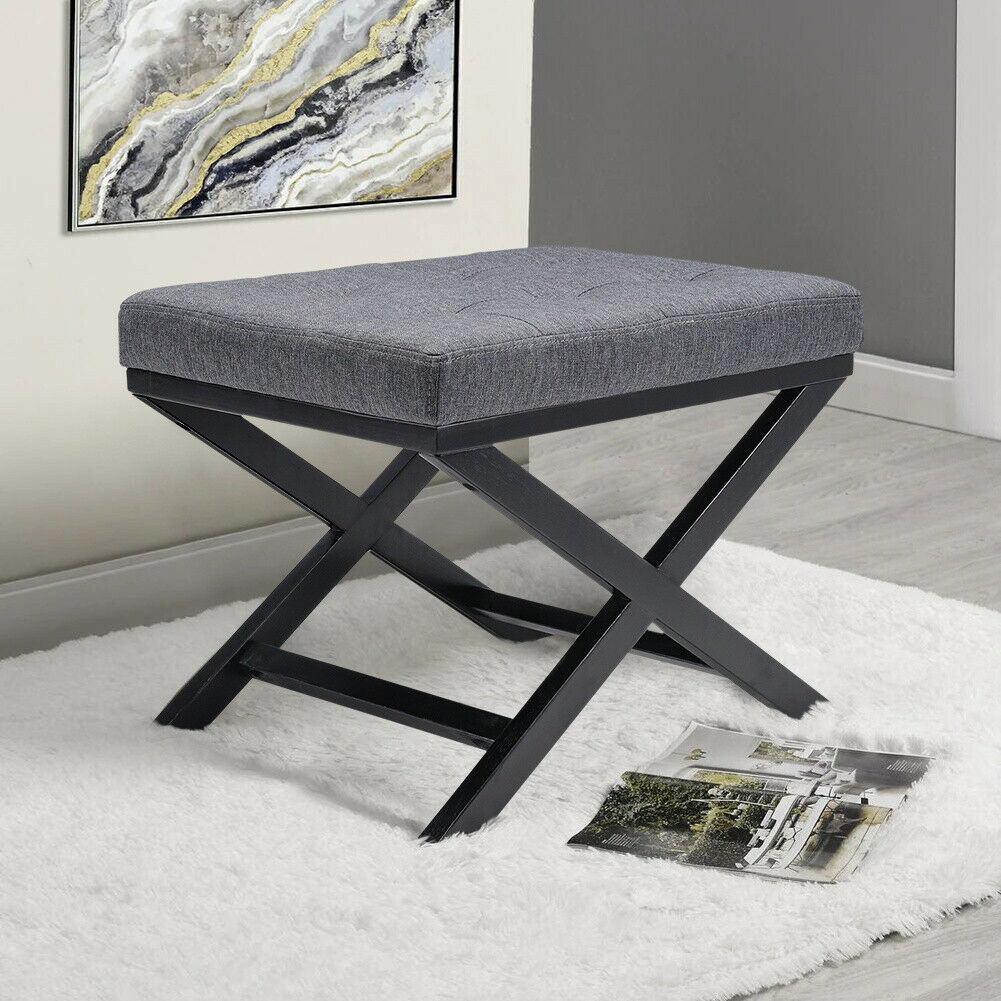 Dressing Table Stool Fabric Padded Seat Steel Legs Home Stool Bench Footstool