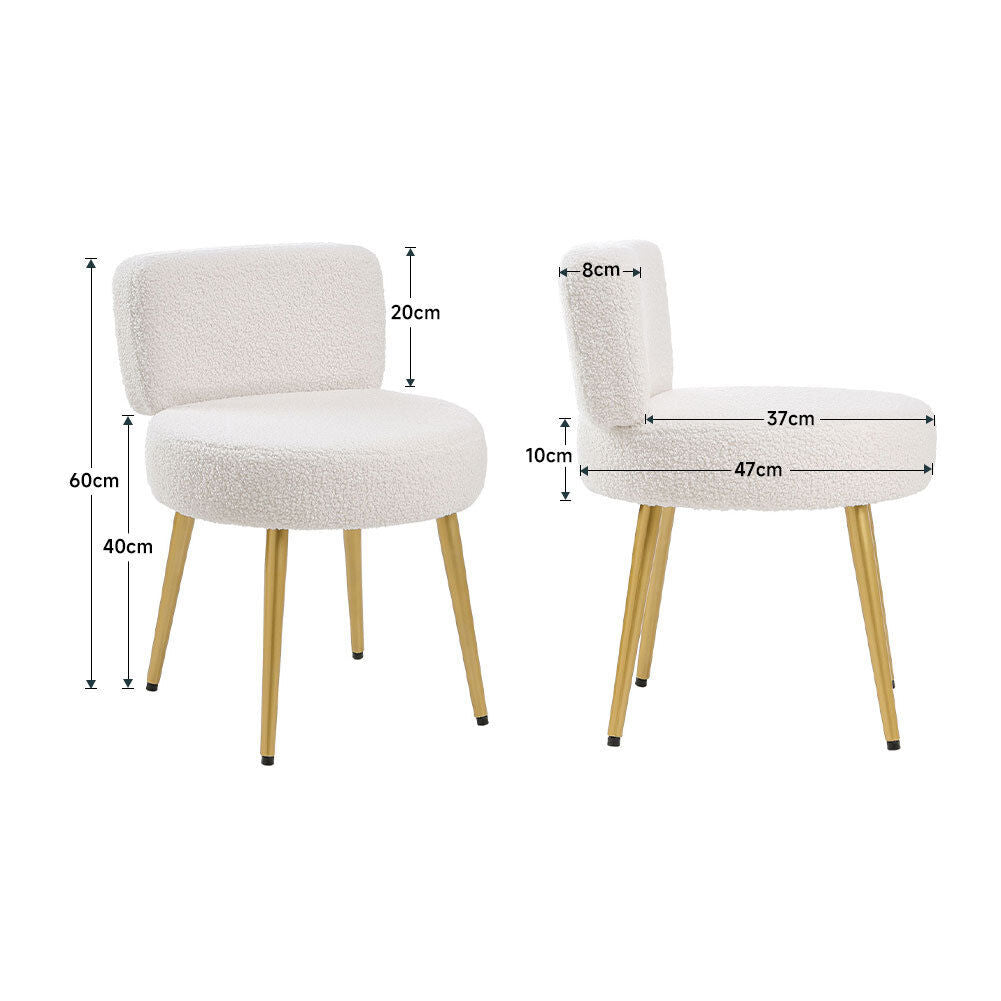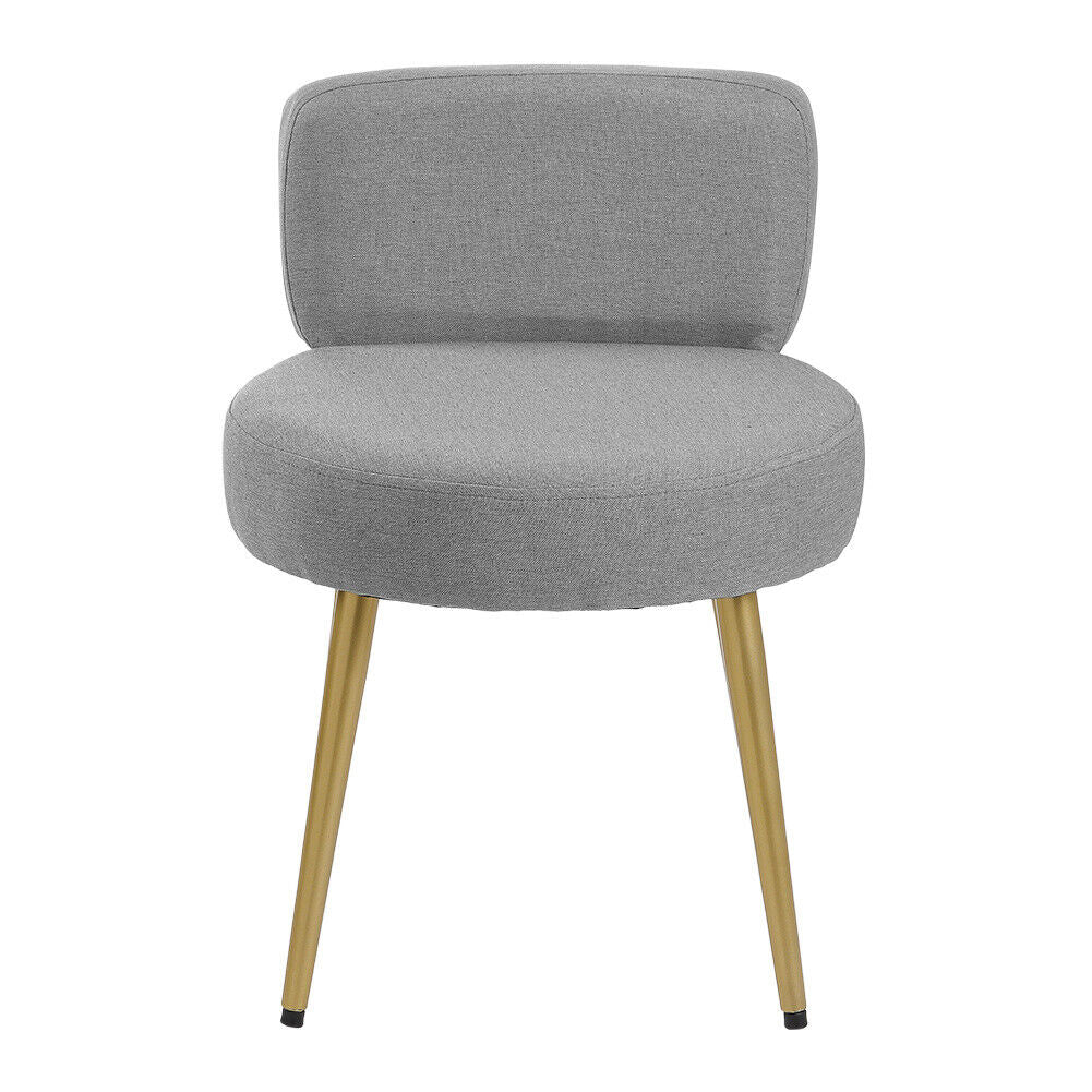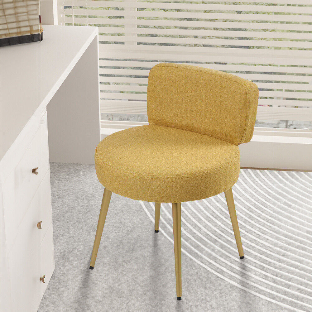 Dressing Table Stool Linen/Faux Fur Makeup Vanity Seat Chair Metal Legs Pouffe