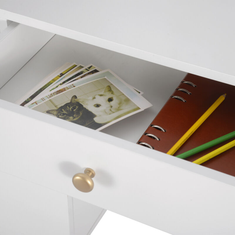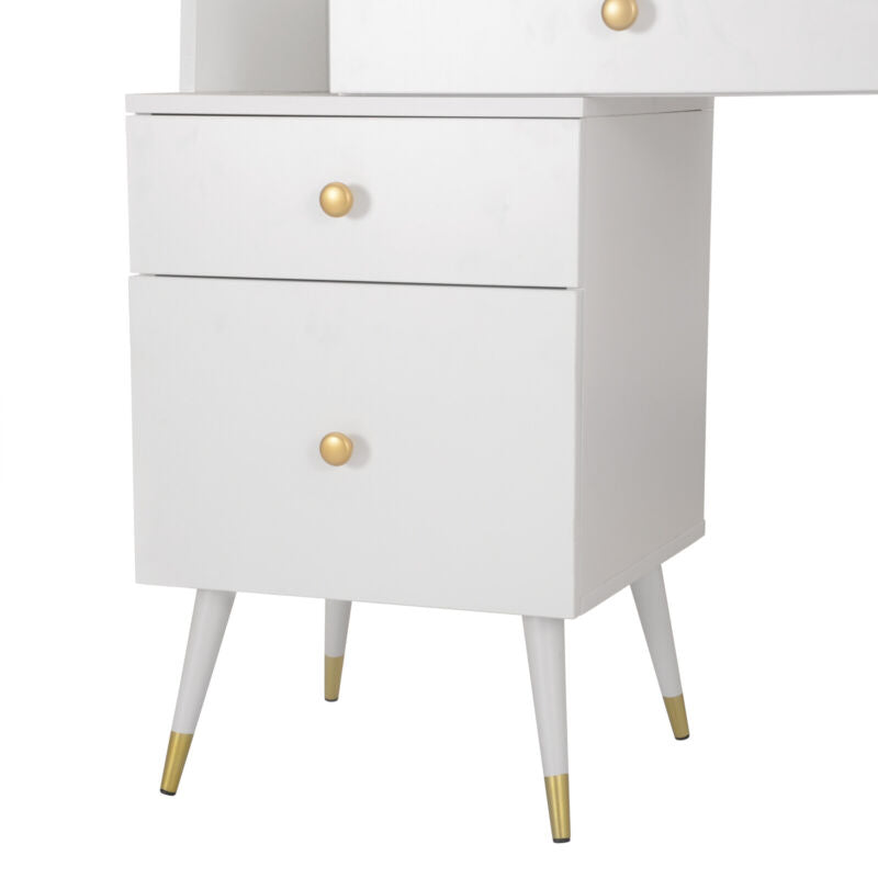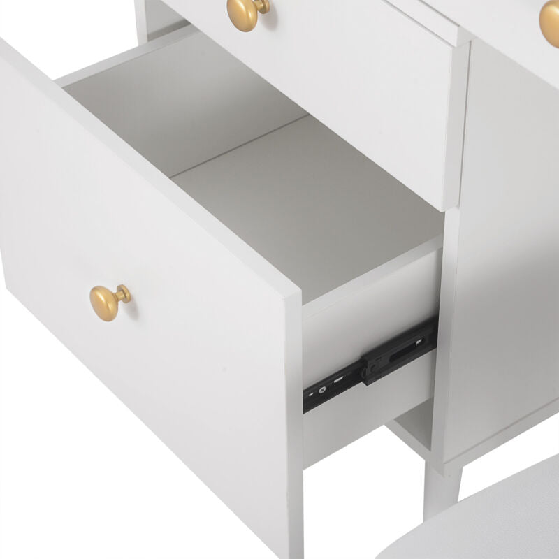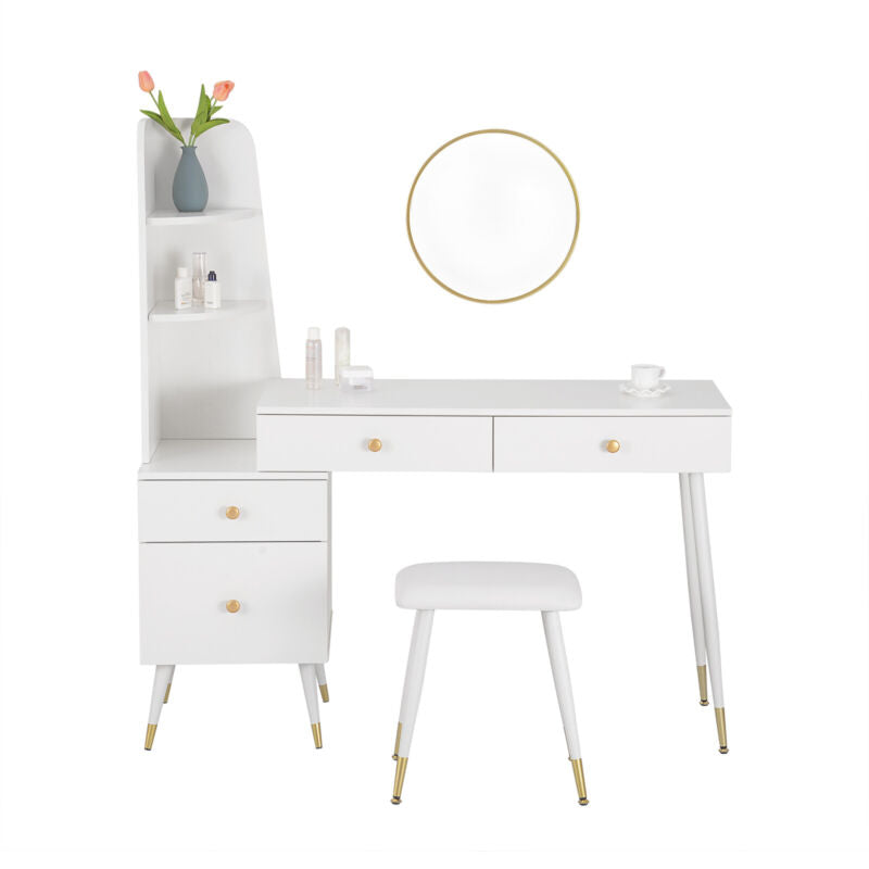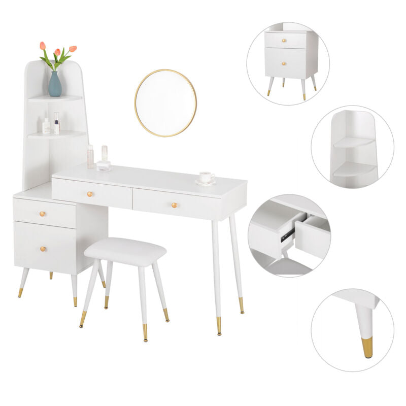 Dressing Table Vanity Makeup Desk w/ Cabinet Mirror Drawers Stool Bedroom White