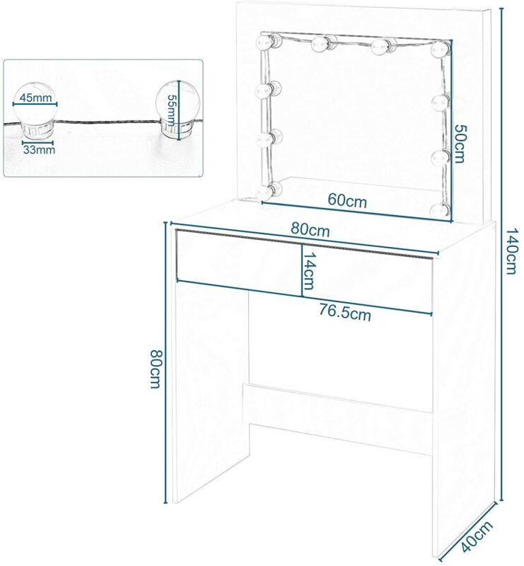 Dressing Table Vanity Makeup Desk w/ LED Lights Mirror Drawer Bedroom Furniture