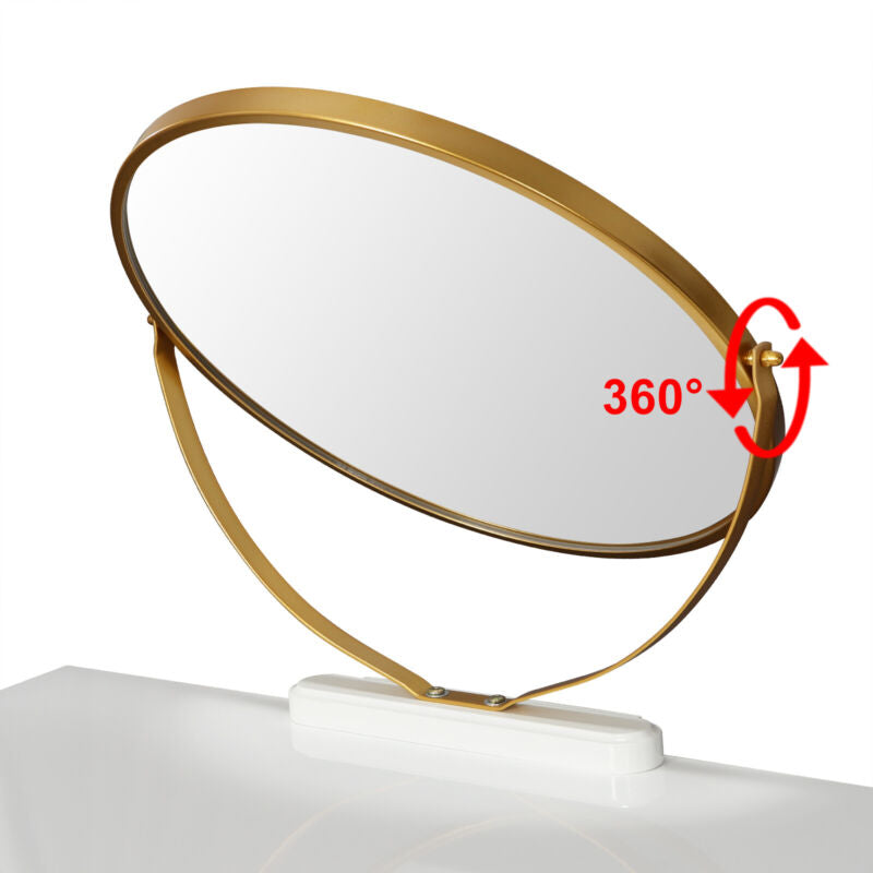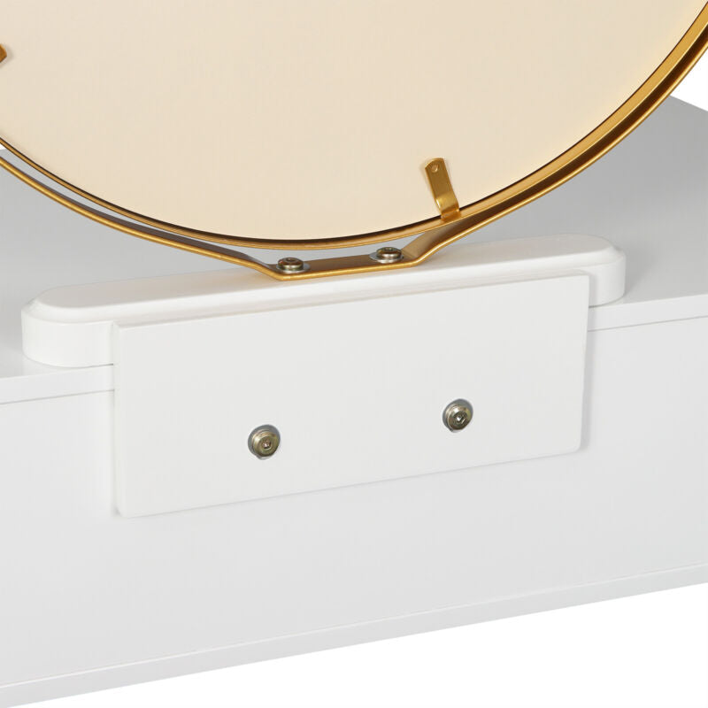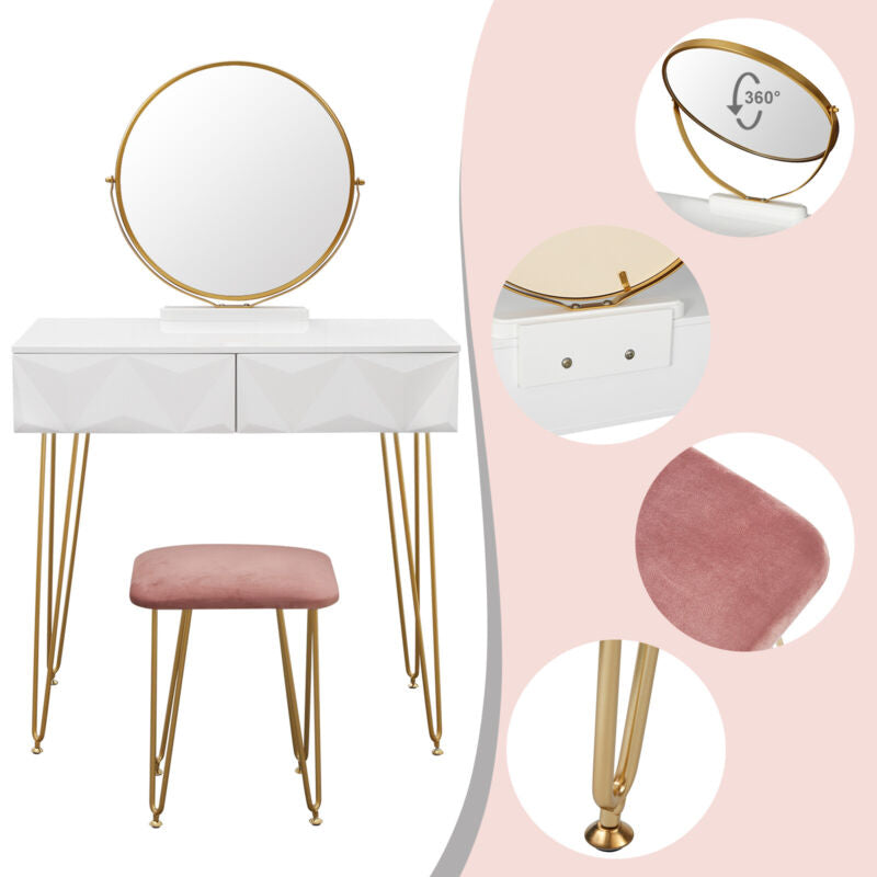 Dressing Table w/ 2 Drawers Round Mirror Stool Makeup Vanity Desk Bedroom White