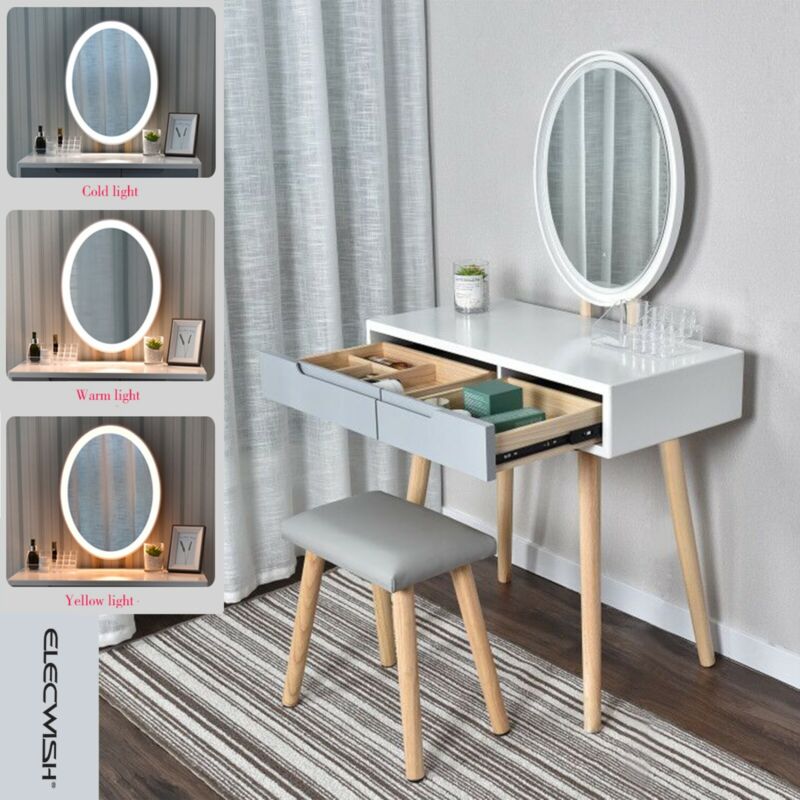 Dressing Table w/LED Light Mirror Make up Desk Vanity Set Stool Free Organizer