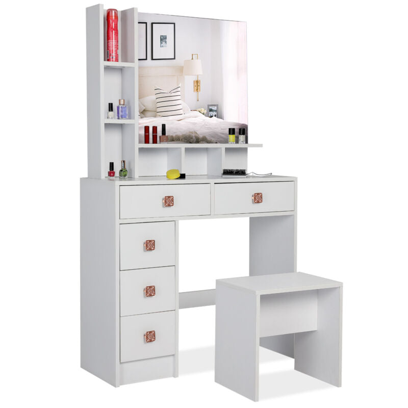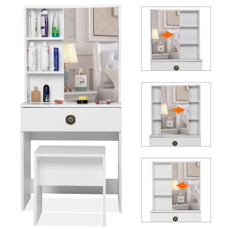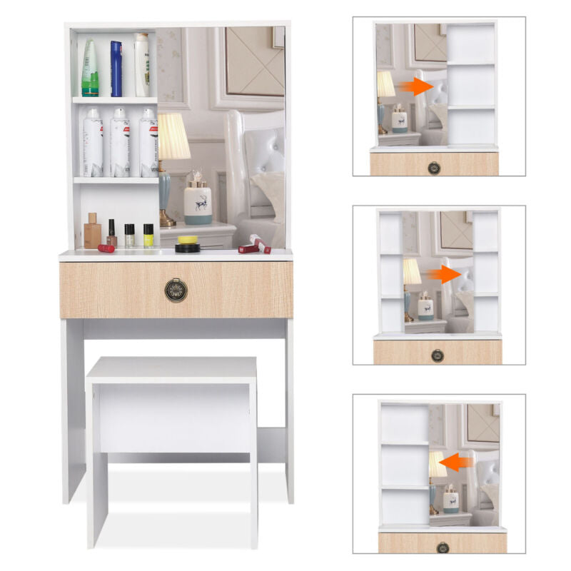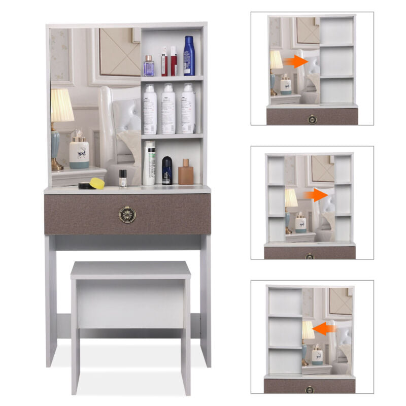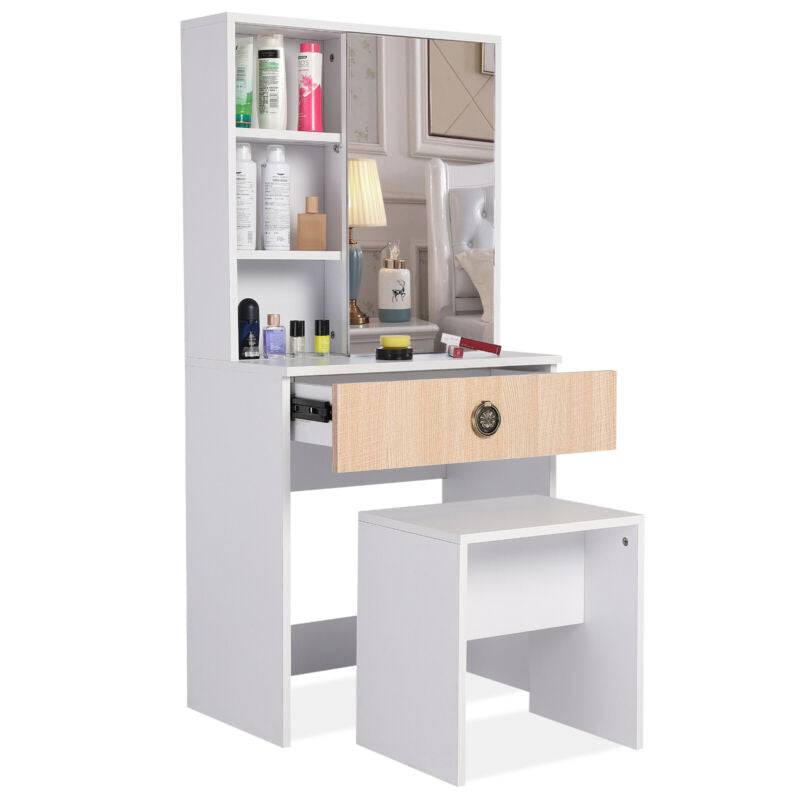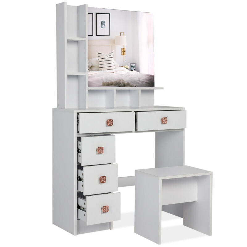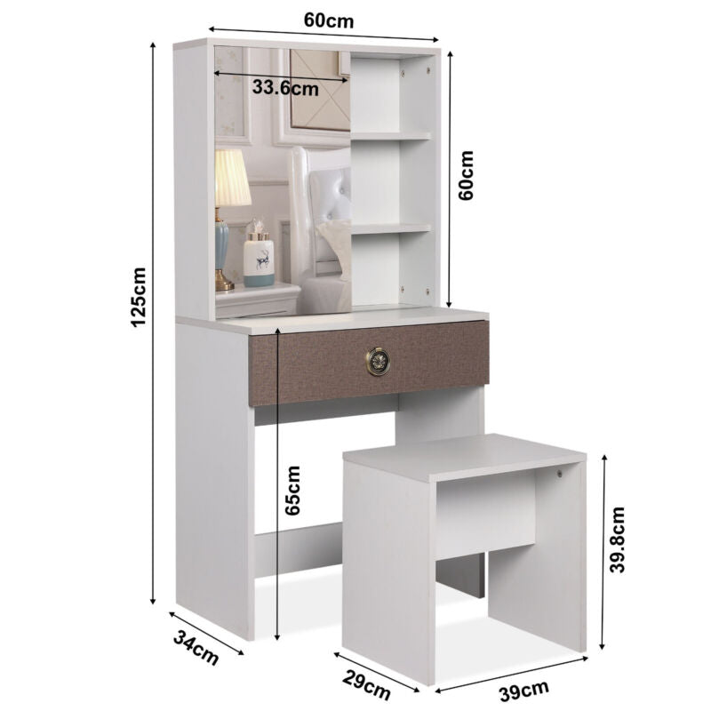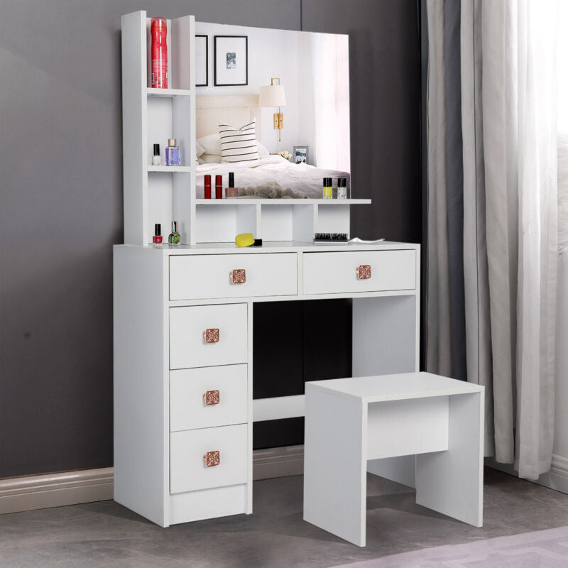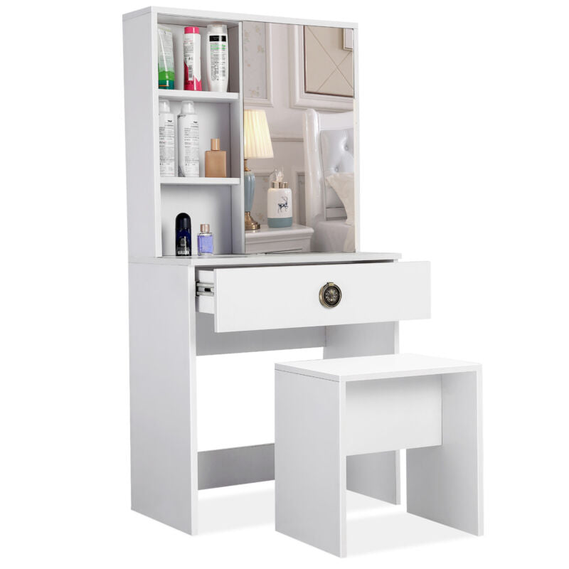 - Dressing Table with Drawers, Mirror Stool Set Makeup Desk Vanity Table Bedroom