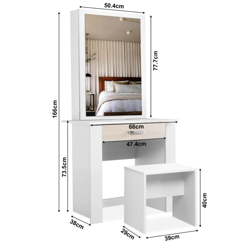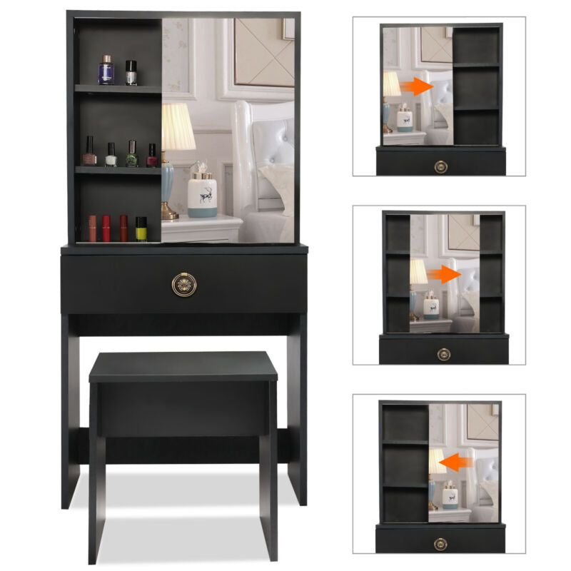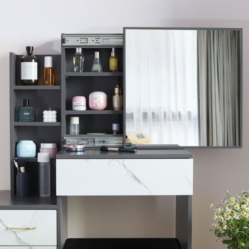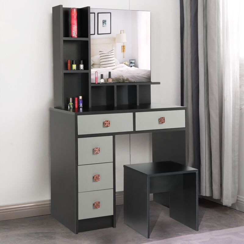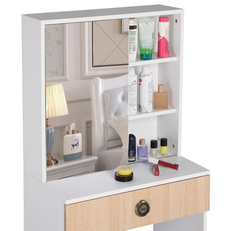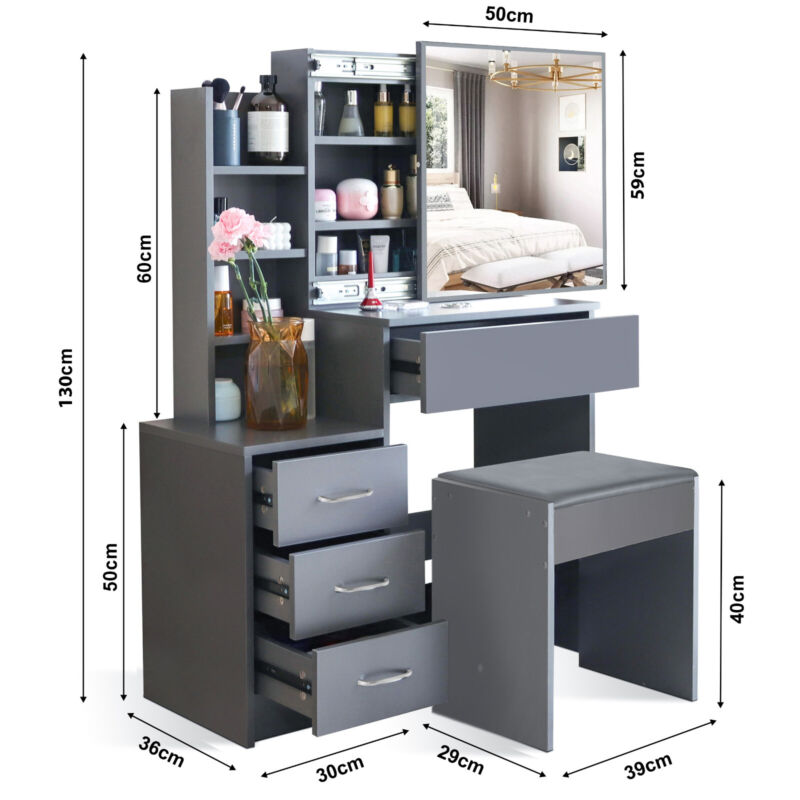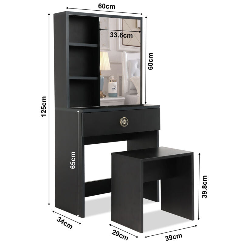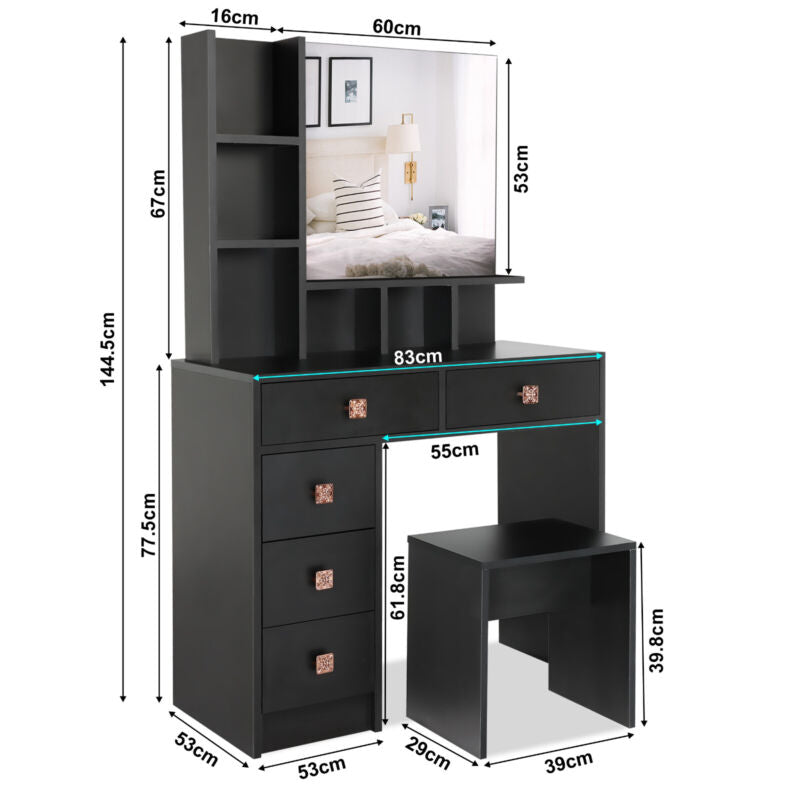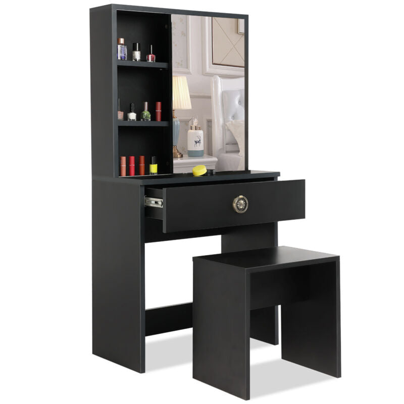 - Dressing Table with Drawers, Mirror Stool Set Makeup Desk Vanity Table Bedroom