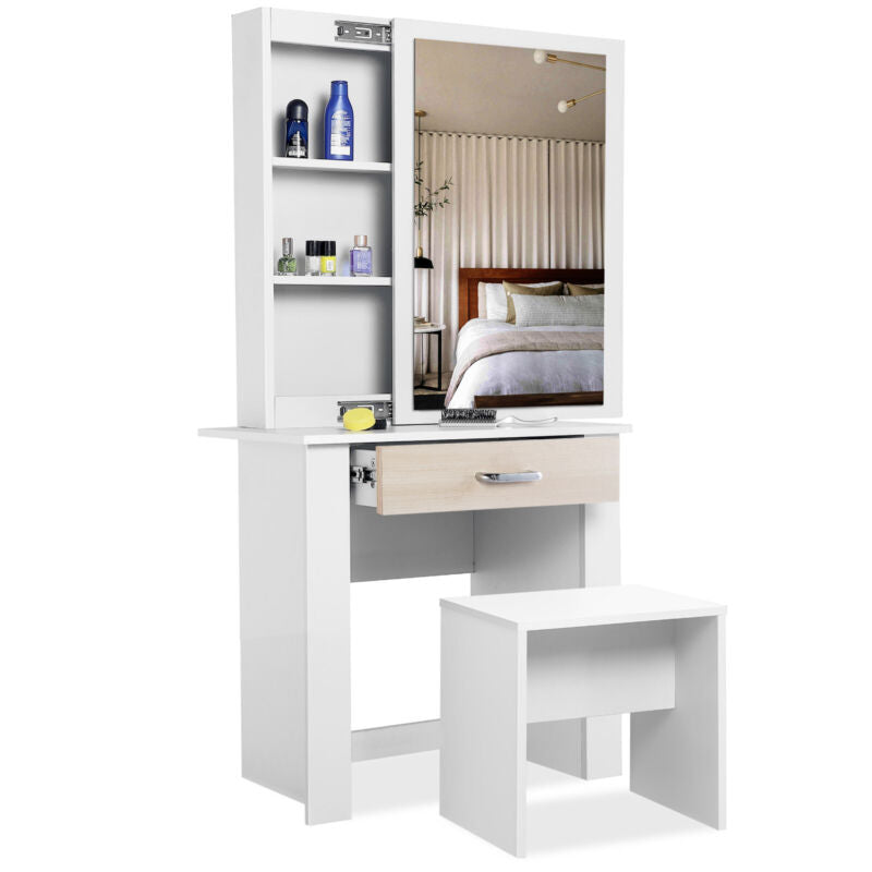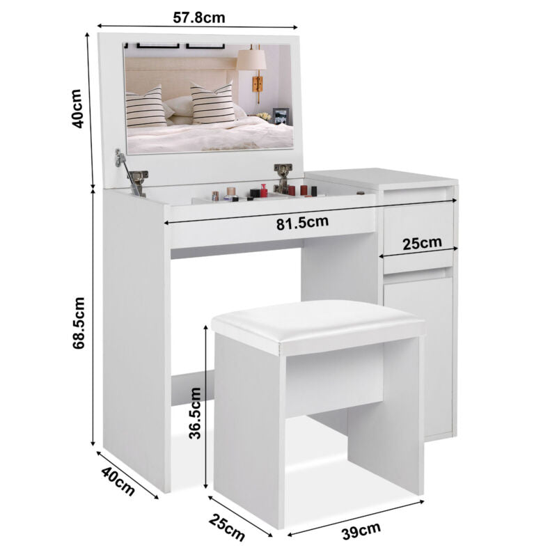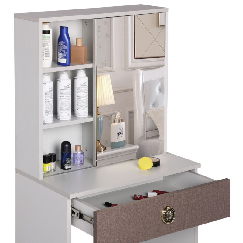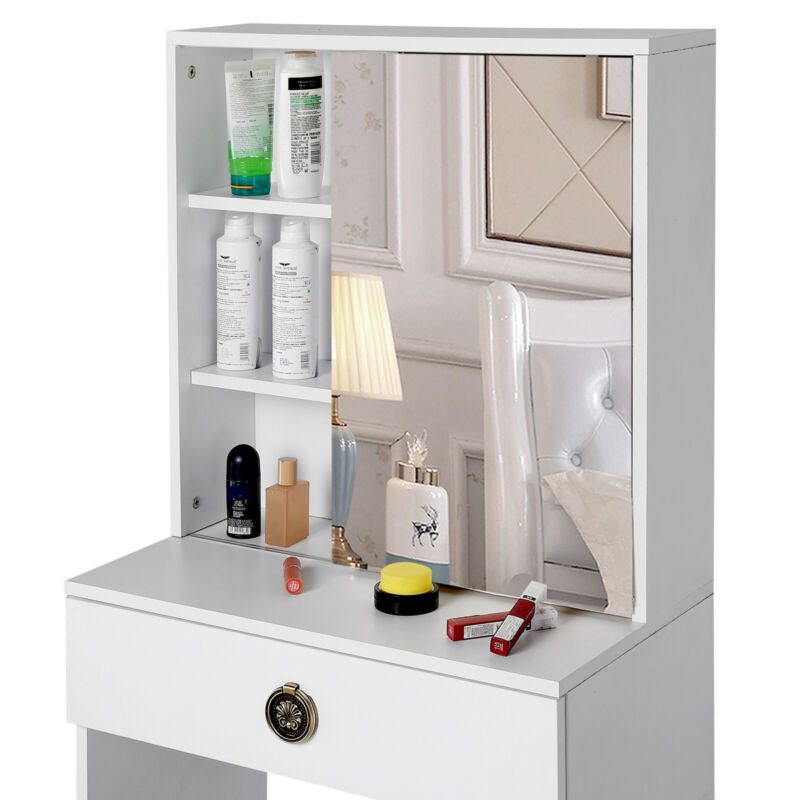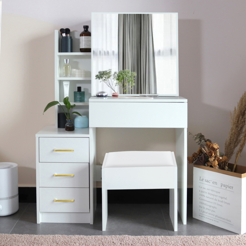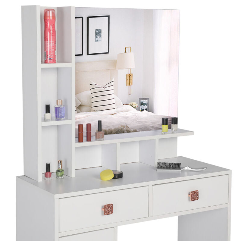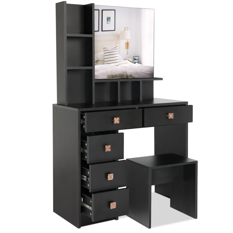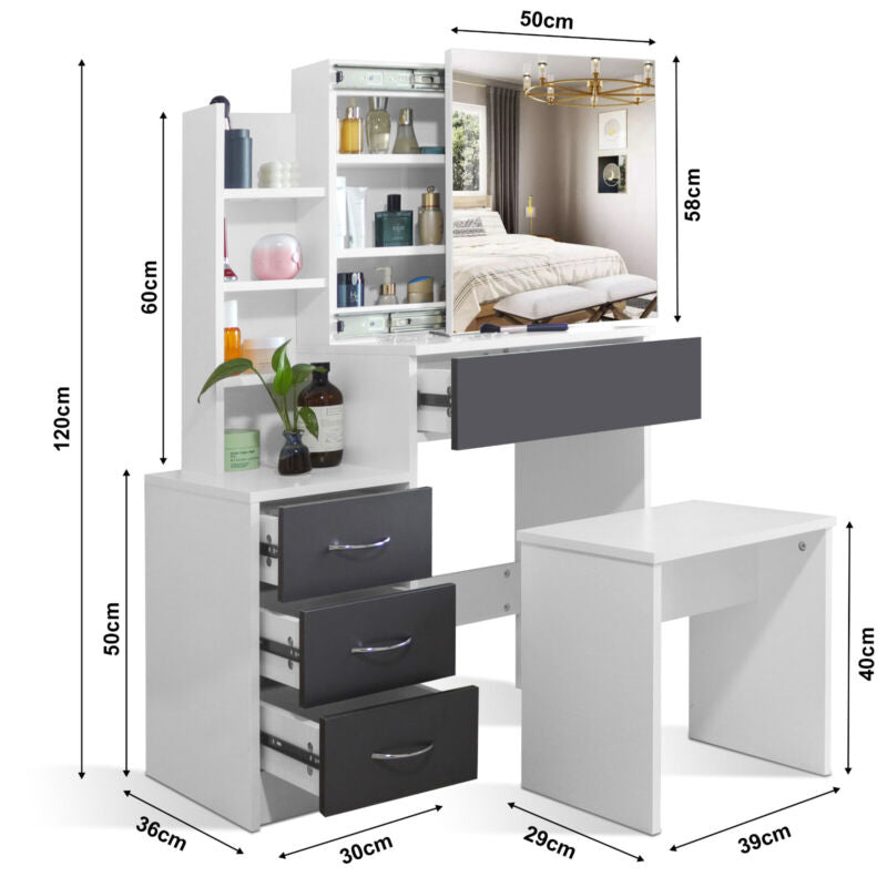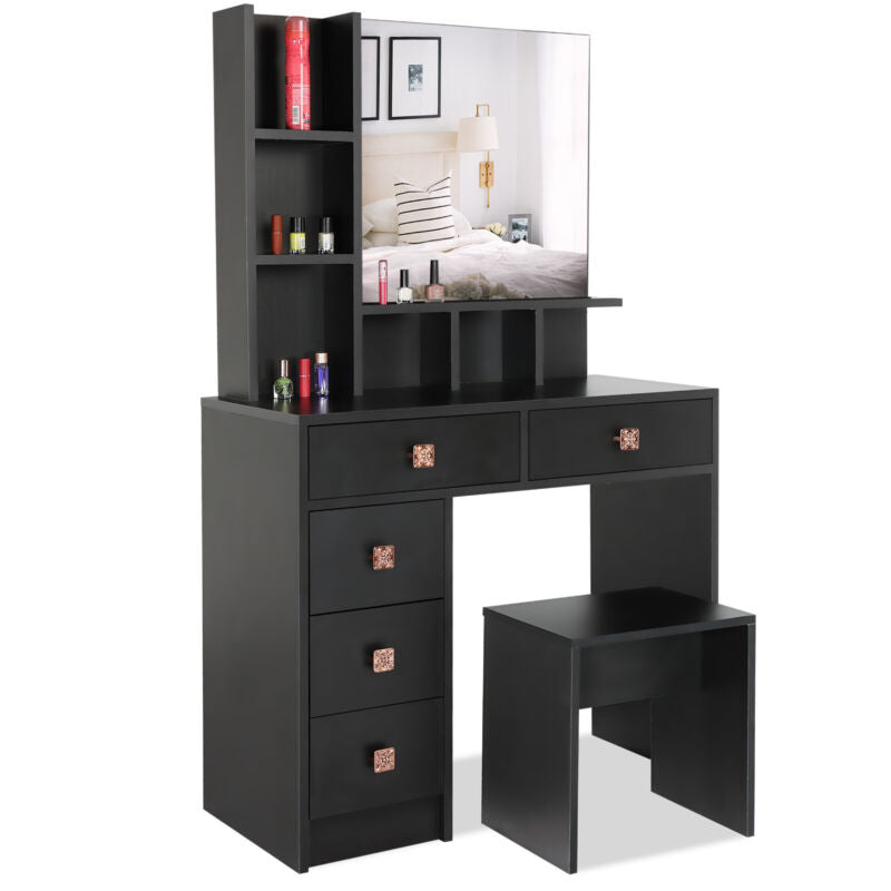- Dressing Table with Drawers, Mirror Stool Set Makeup Desk Vanity Table Bedroom