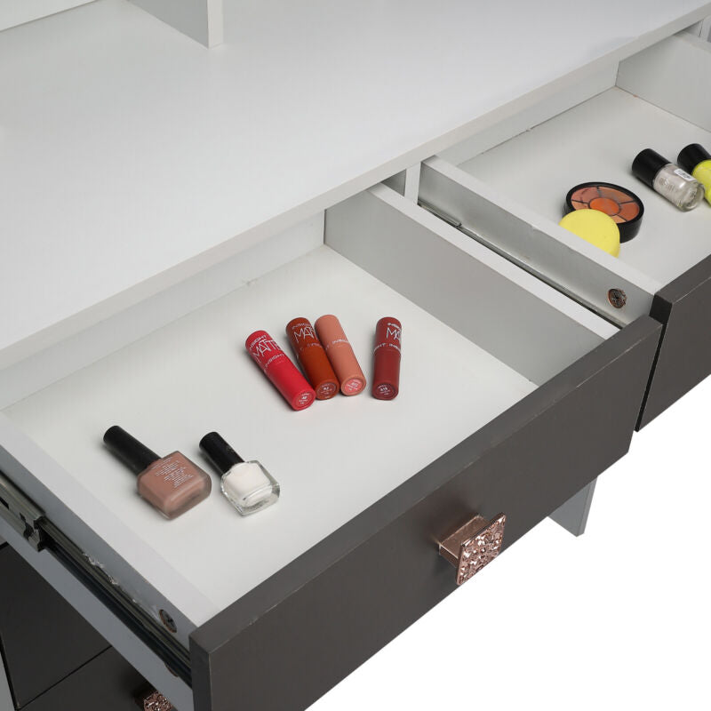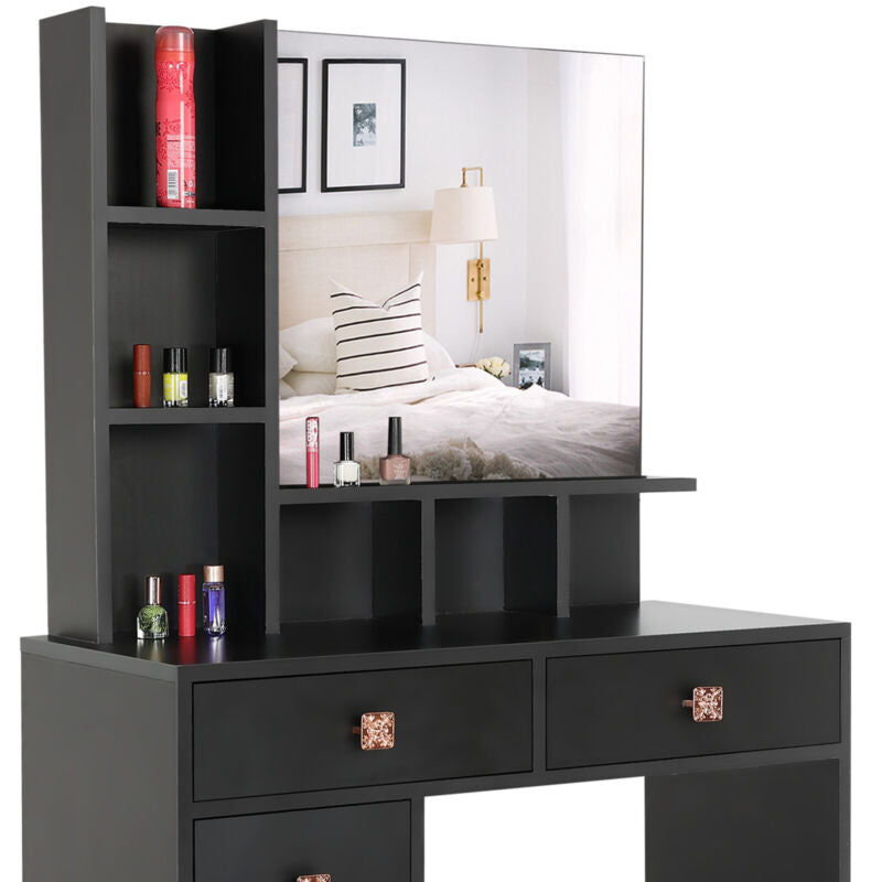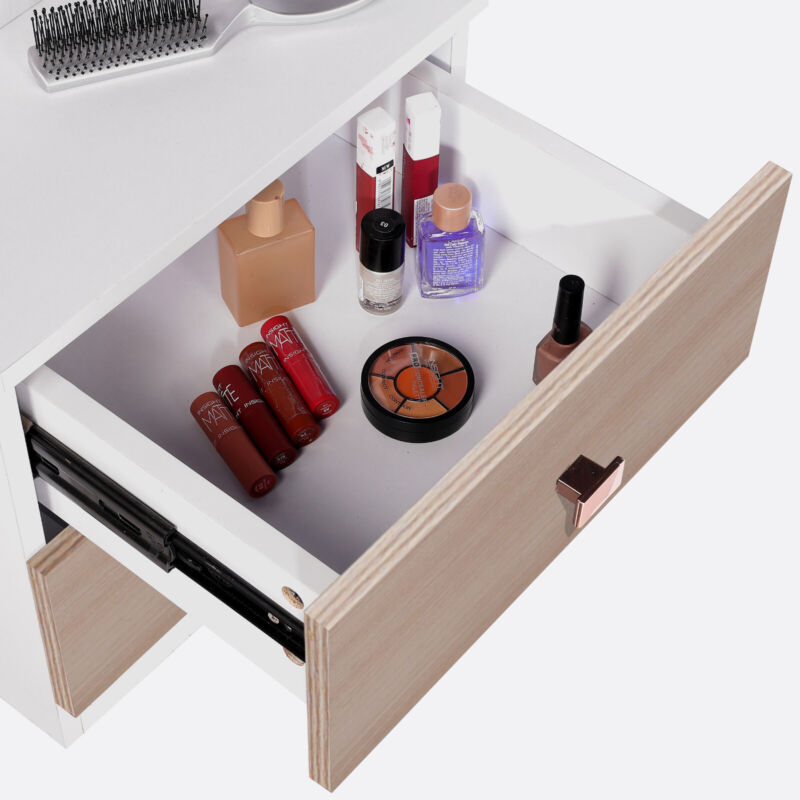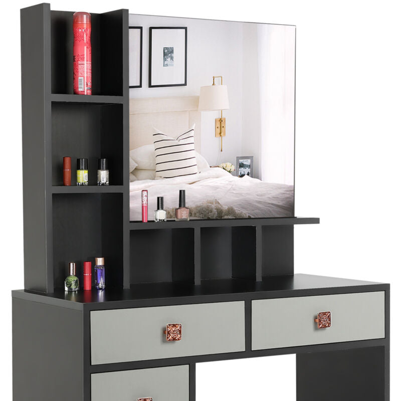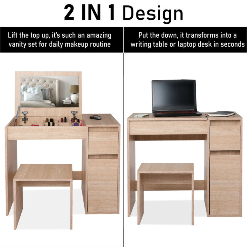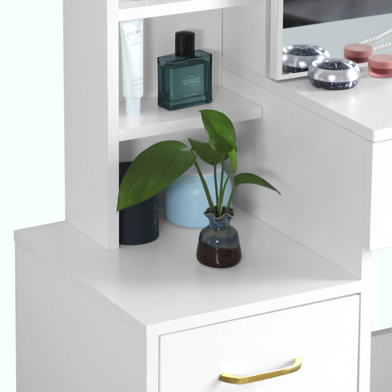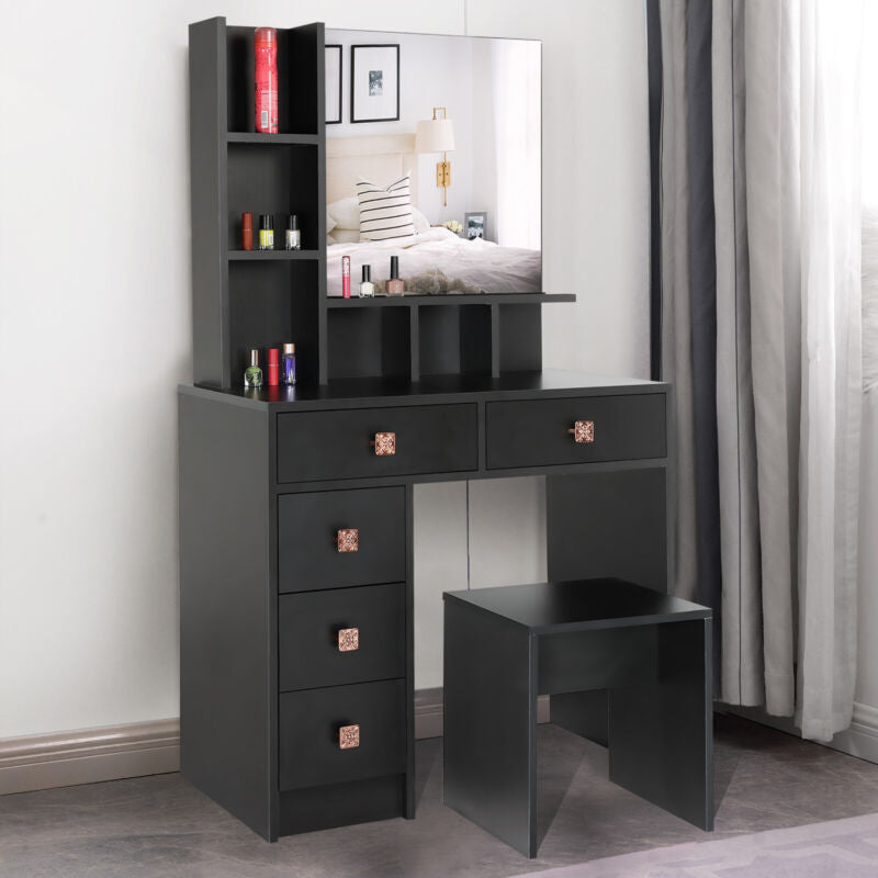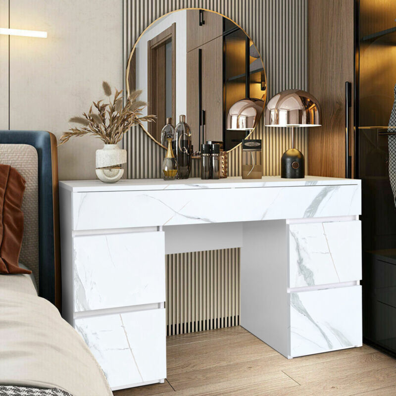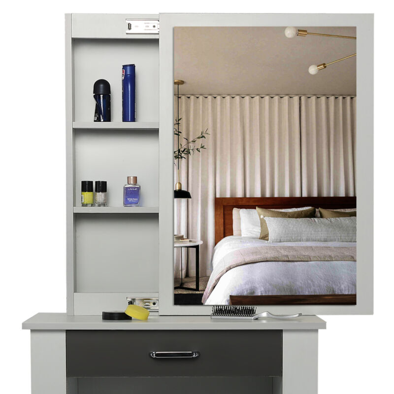 - Dressing Table with Drawers, Mirror Stool Set Makeup Desk Vanity Table Bedroom