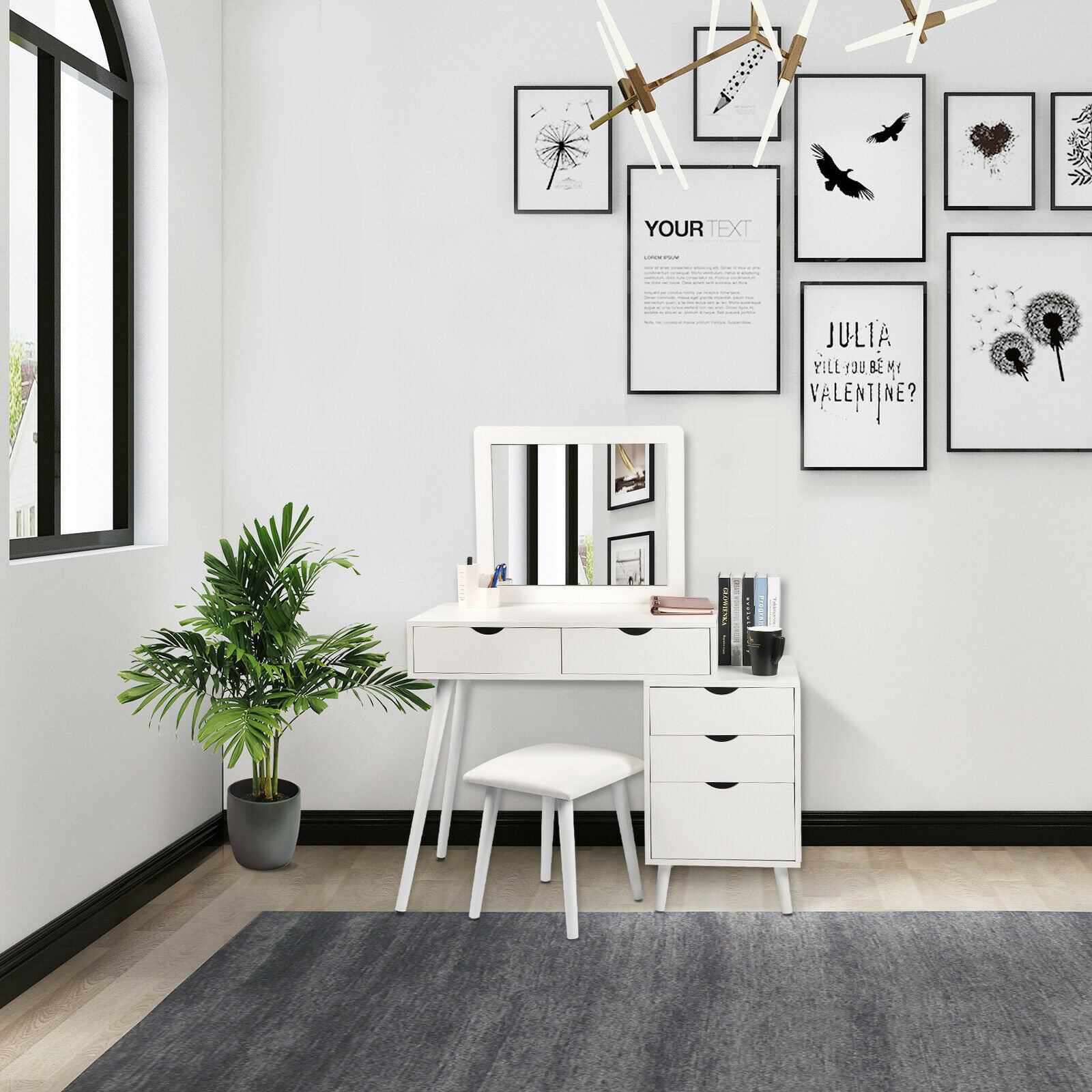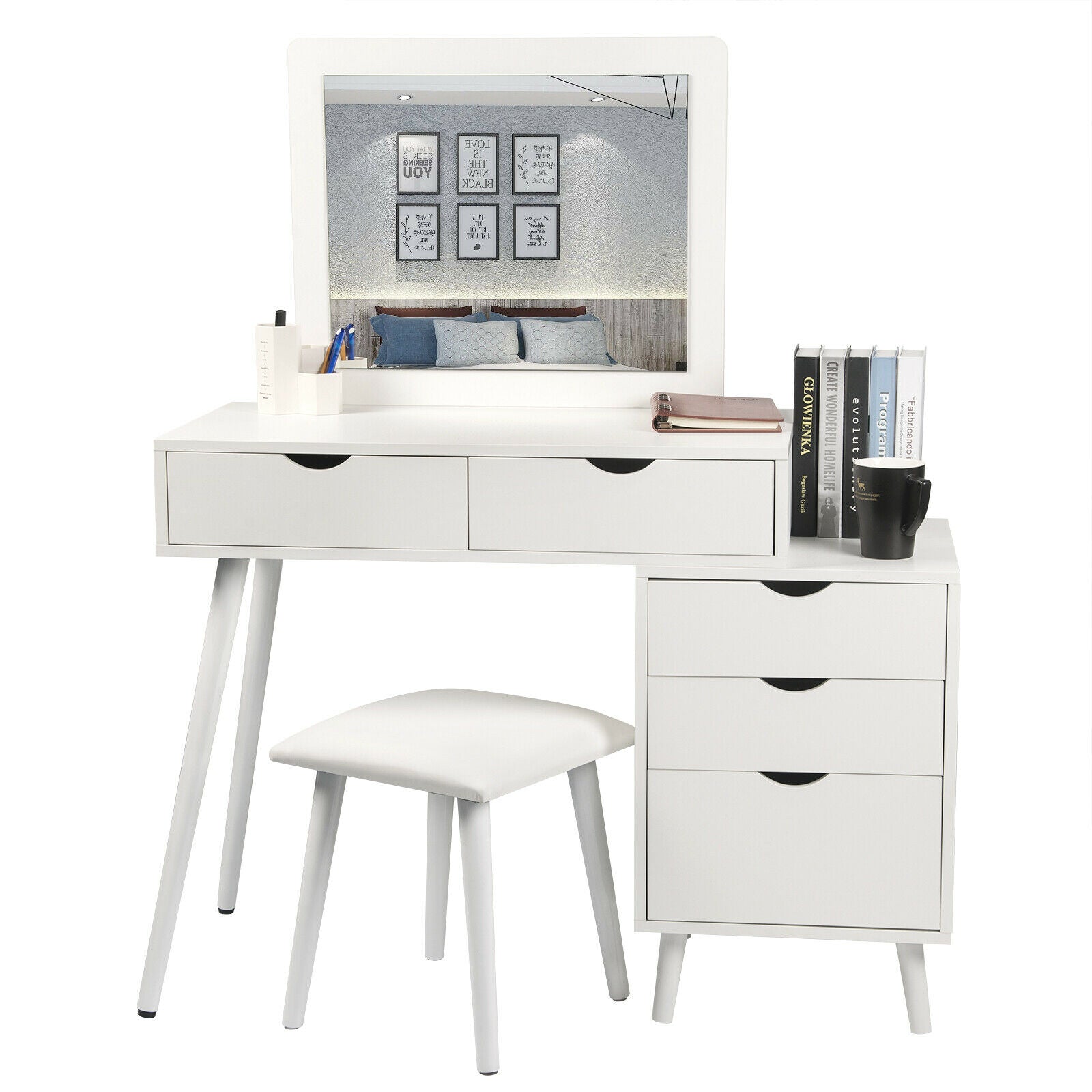 Dressing Table with Mirror Stool Drawer Cupboard Vanity Set Makeup Desk White