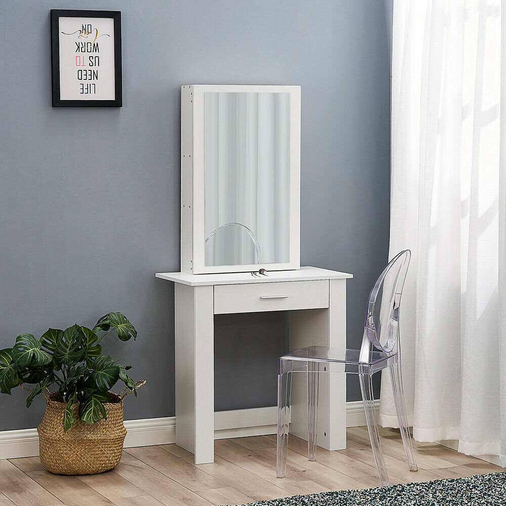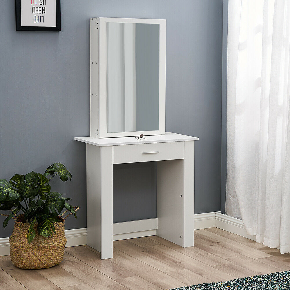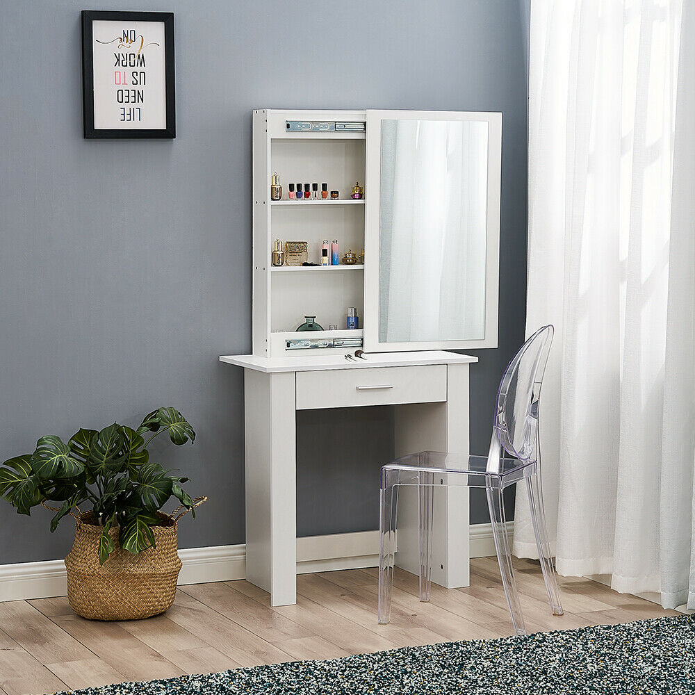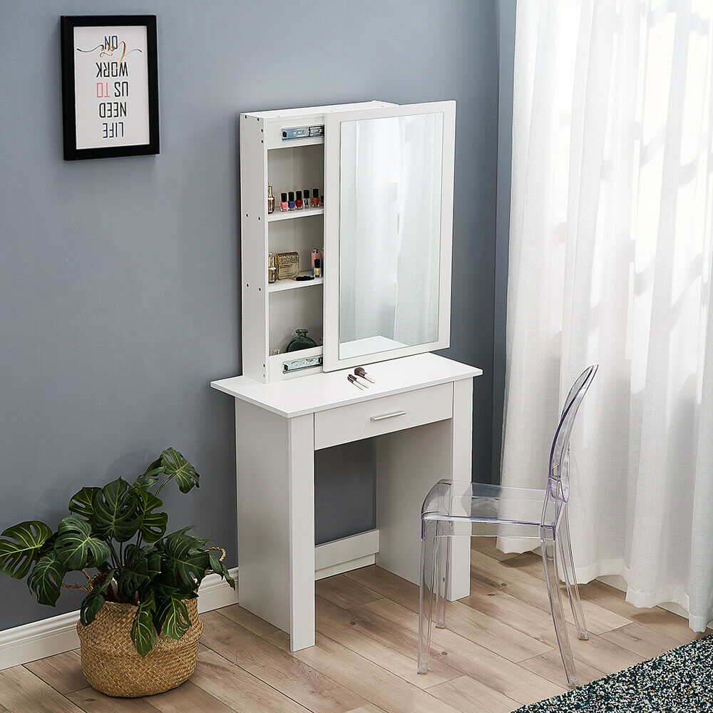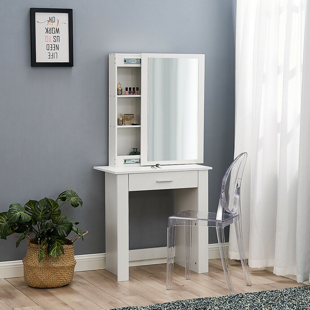 Dressing Vanity Table Makeup Desk Sliding Mirror 1 Drawer Shelves Storage White