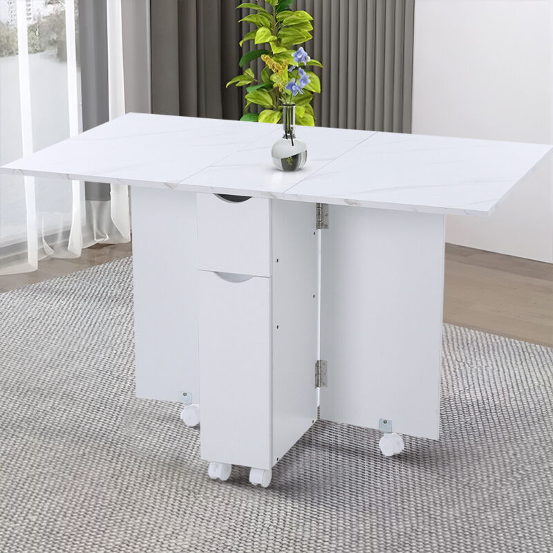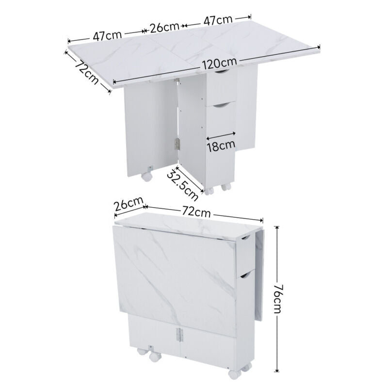 Features Drop Leaf, Foldable, Wheels, With Storage, With Drawers