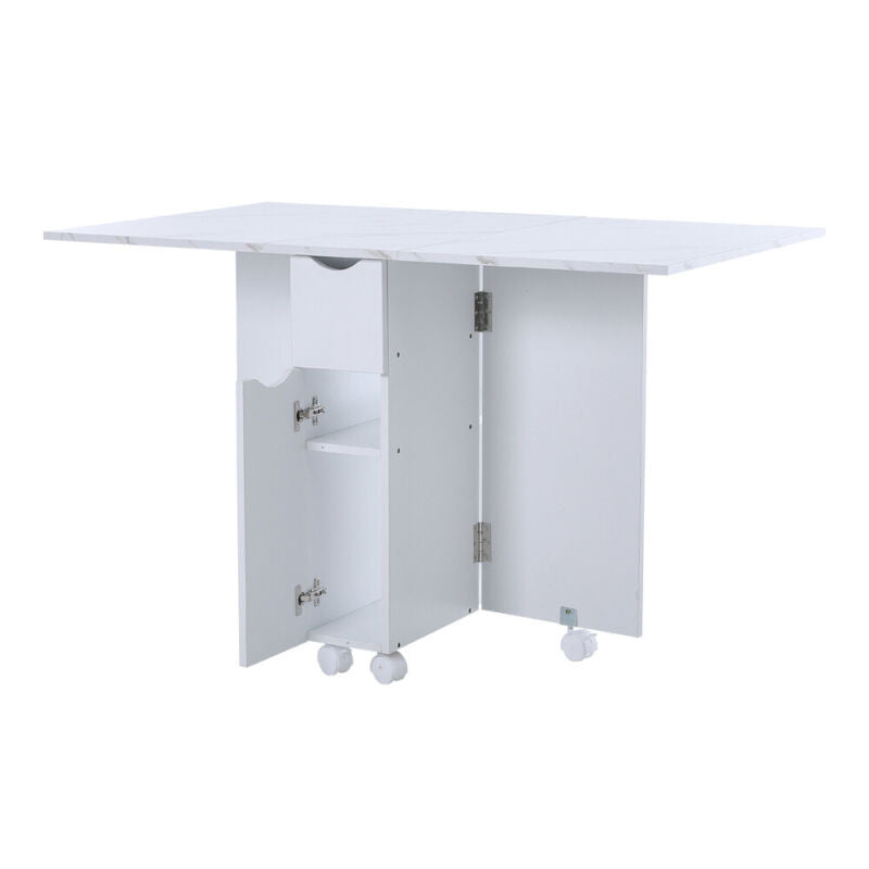 Drop Leaf Dining Table Mobile Folding Writing Desk 1 Drawer Storage Shelf Wheels