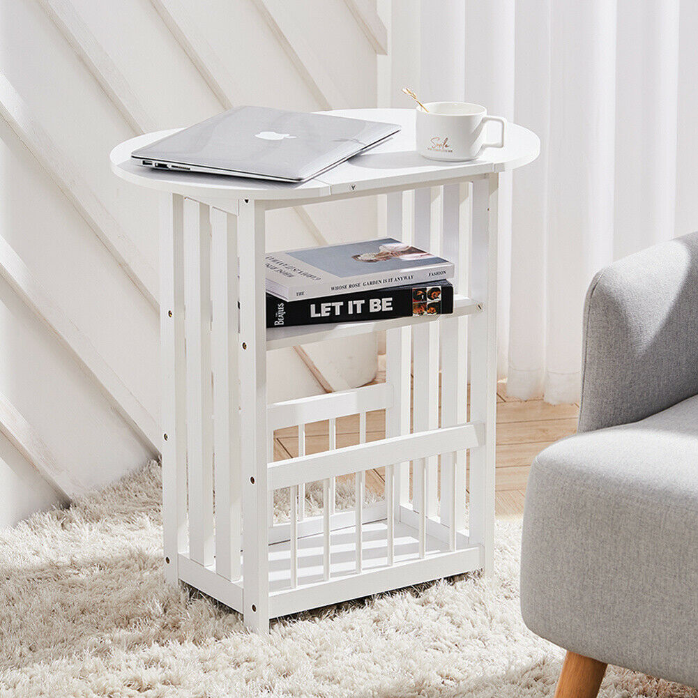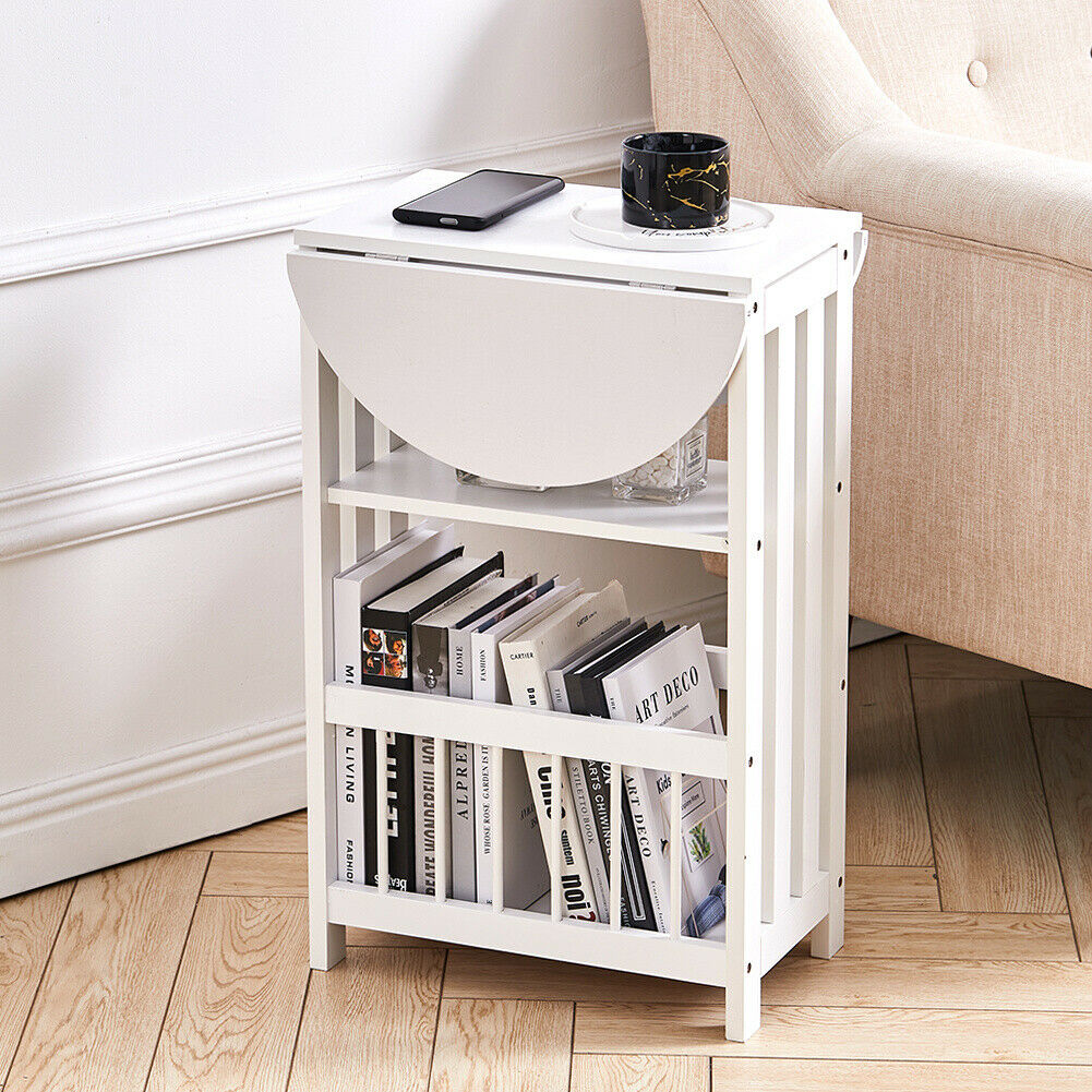 Drop Leaf Side End Table Sofa Tea Coffee Table Magazine Book Rack Storage Shelf