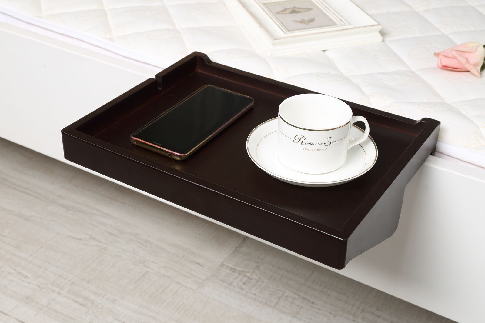 Eco Friendly 100% Bamboo Clip-on Bedside Caddy Shelf Table Tray, Walnut