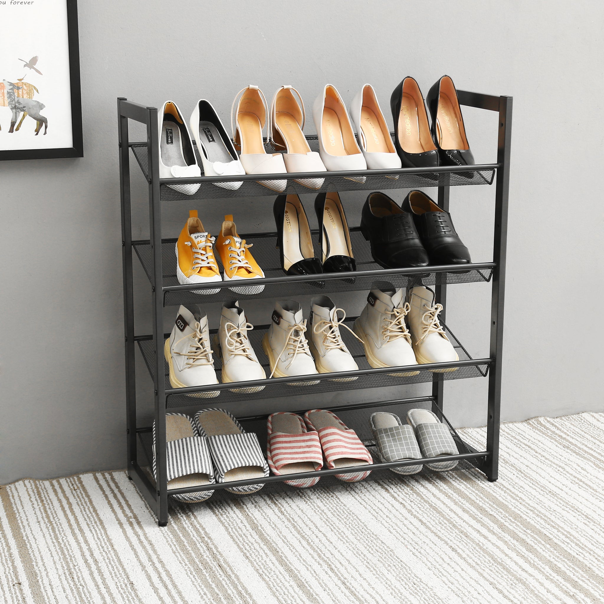 EHC Multi-Functional Stackable Metal Mesh Shoe Rack Storage Organiser, Grey
