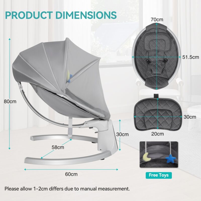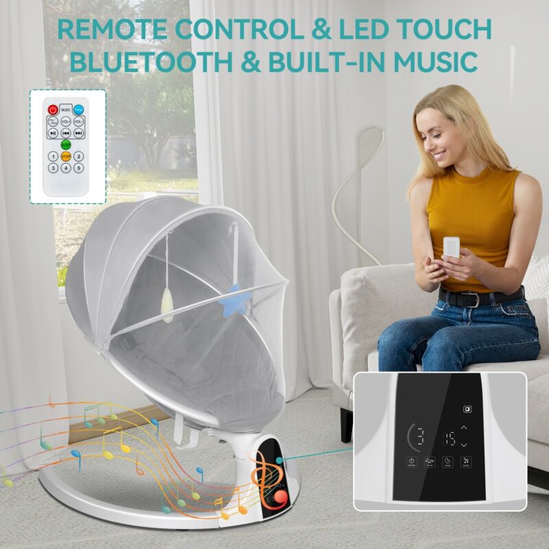 Electric Baby Swing Infant Cradle Bouncer Rocker Chair Music Remote Bluetooth