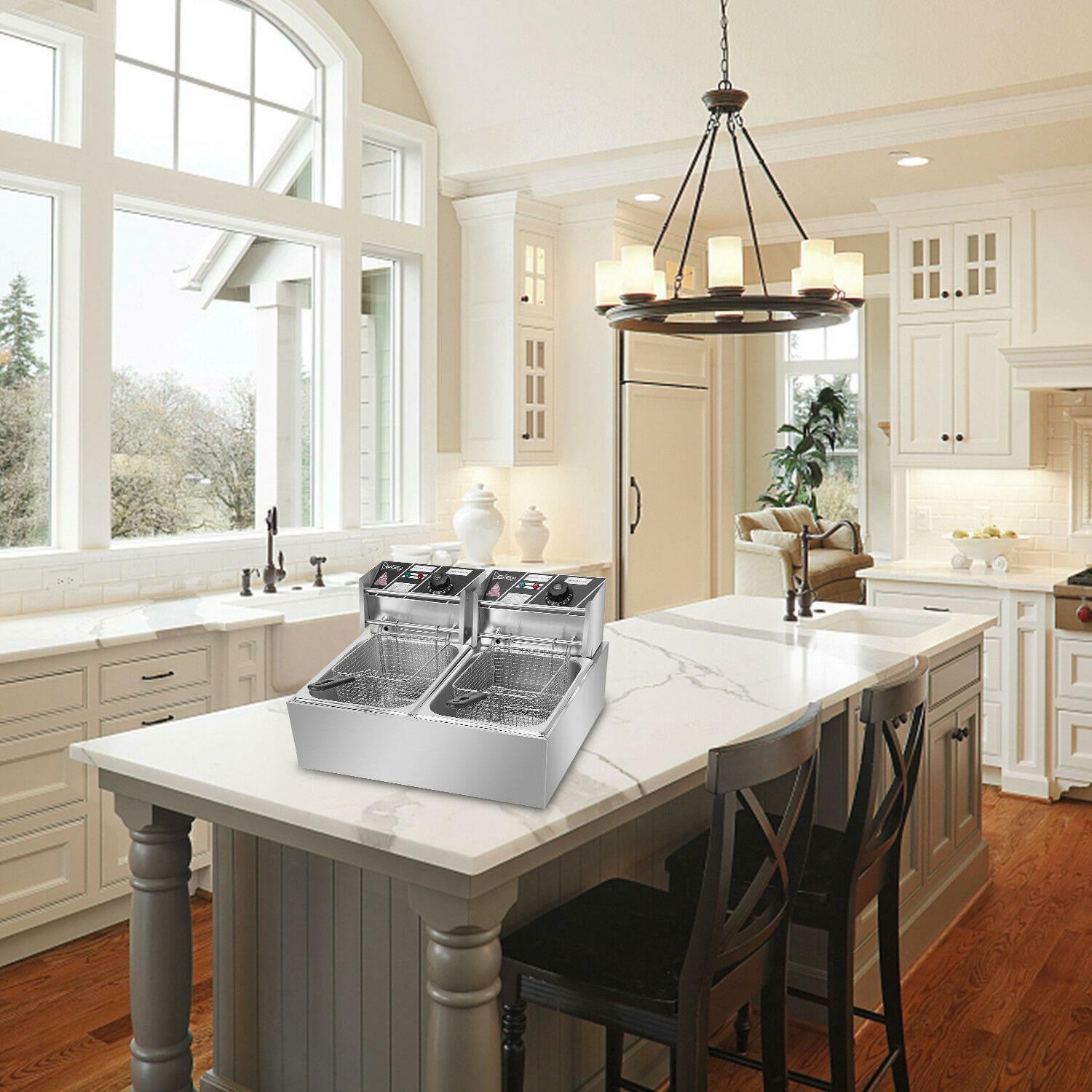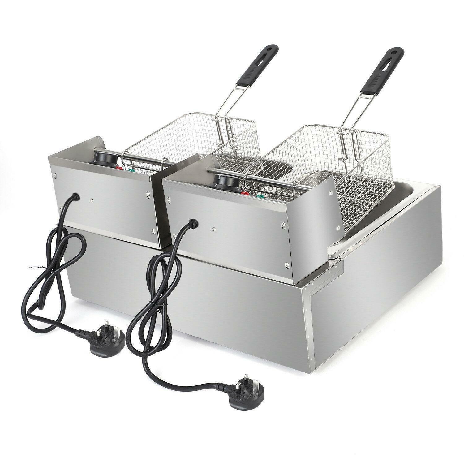 Electric Deep Fryer Dual Tank Stainless Steel 12L 5000W Commercial Restaurant