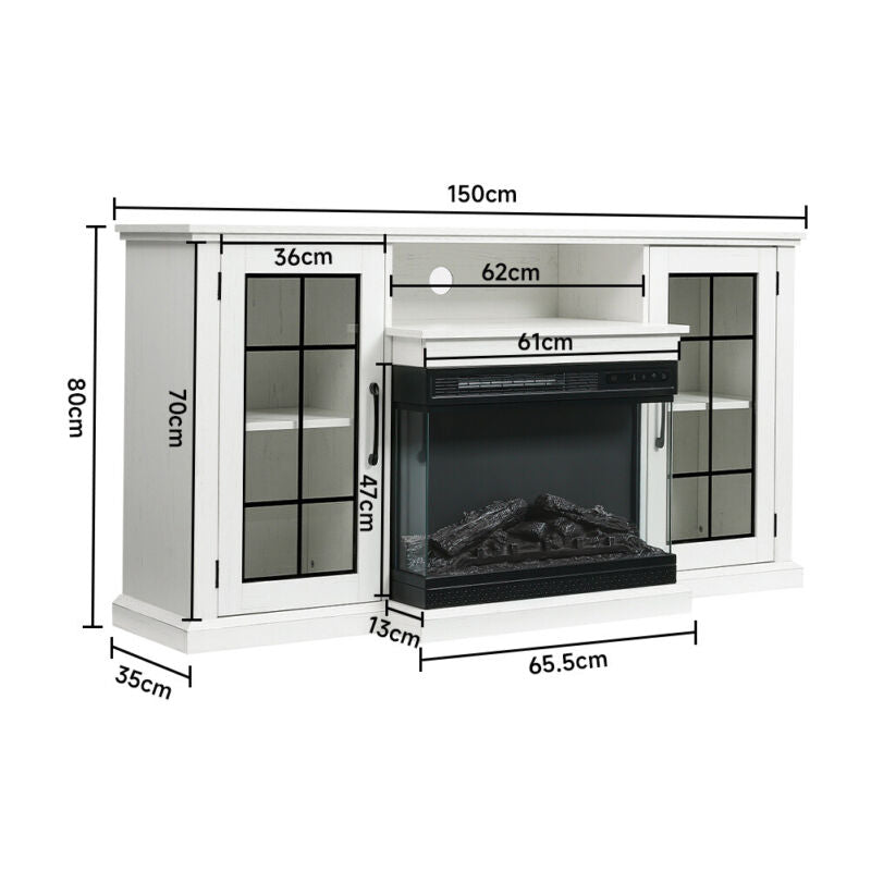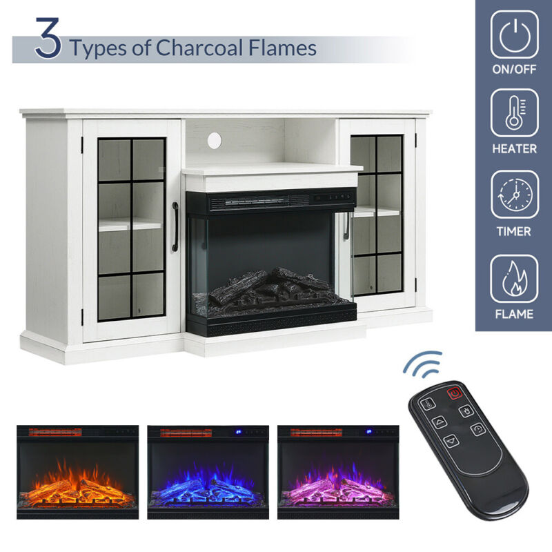 Adjustable Brightness, Adjustable Flame Colors, Adjustable Thermostat, Automatic Shut Off, Doors, LED Flames, On/Off Switch, Remote Control, Timer, TV Stand, With Viewing Window, Free Standing, Timer, LCD Display, 3 Colours 5 Brightness, 62 F to 82 F adjustable temperature, Decorative fake wood, Overheat protection, Log LED effect, With Storage