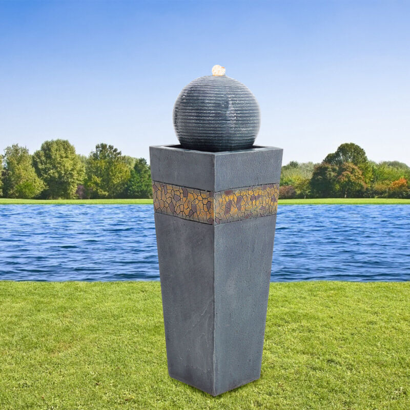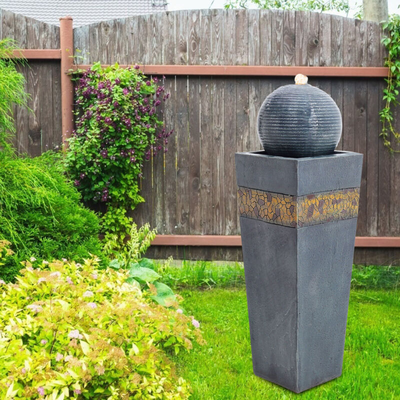 Electric Garden Water Feature Outdoor Fountain Rotating Ball LED Lights Statue