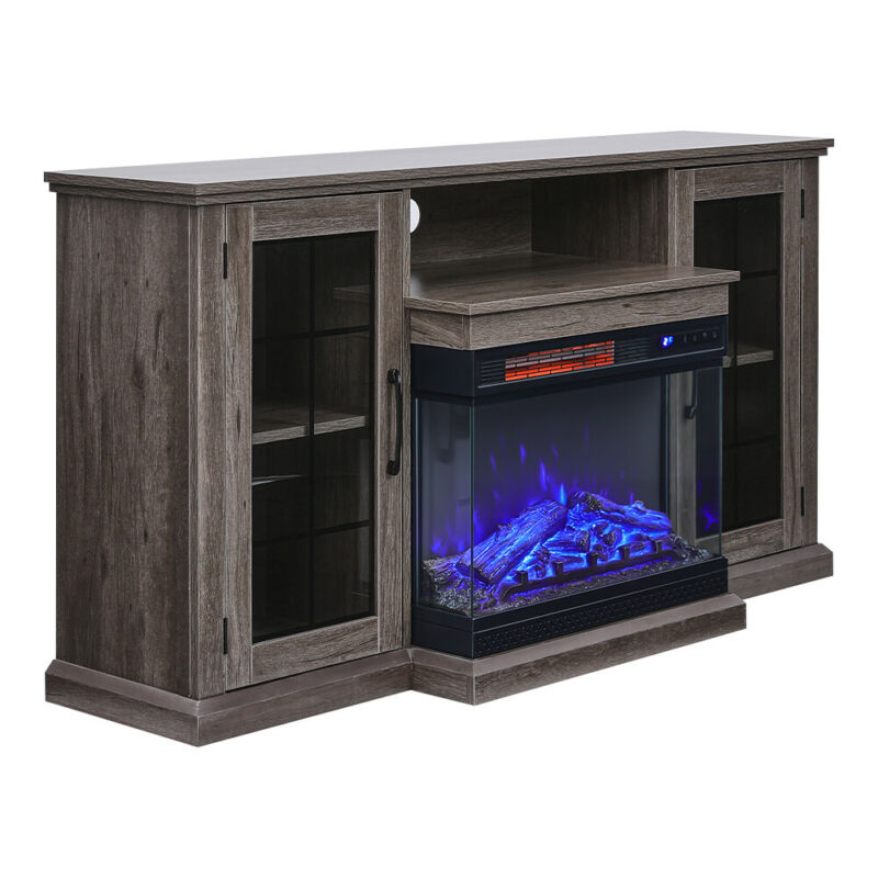 Adjustable Brightness, Adjustable Flame Colors, Adjustable Thermostat, Automatic Shut Off, Doors, LED Flames, On/Off Switch, Remote Control, Timer, TV Stand, With Viewing Window, Free Standing, Timer, LCD Display, 3 Colours 5 Brightness, 62 F to 82 F adjustable temperature, Decorative fake wood, Overheat protection, Log LED effect, With Storage