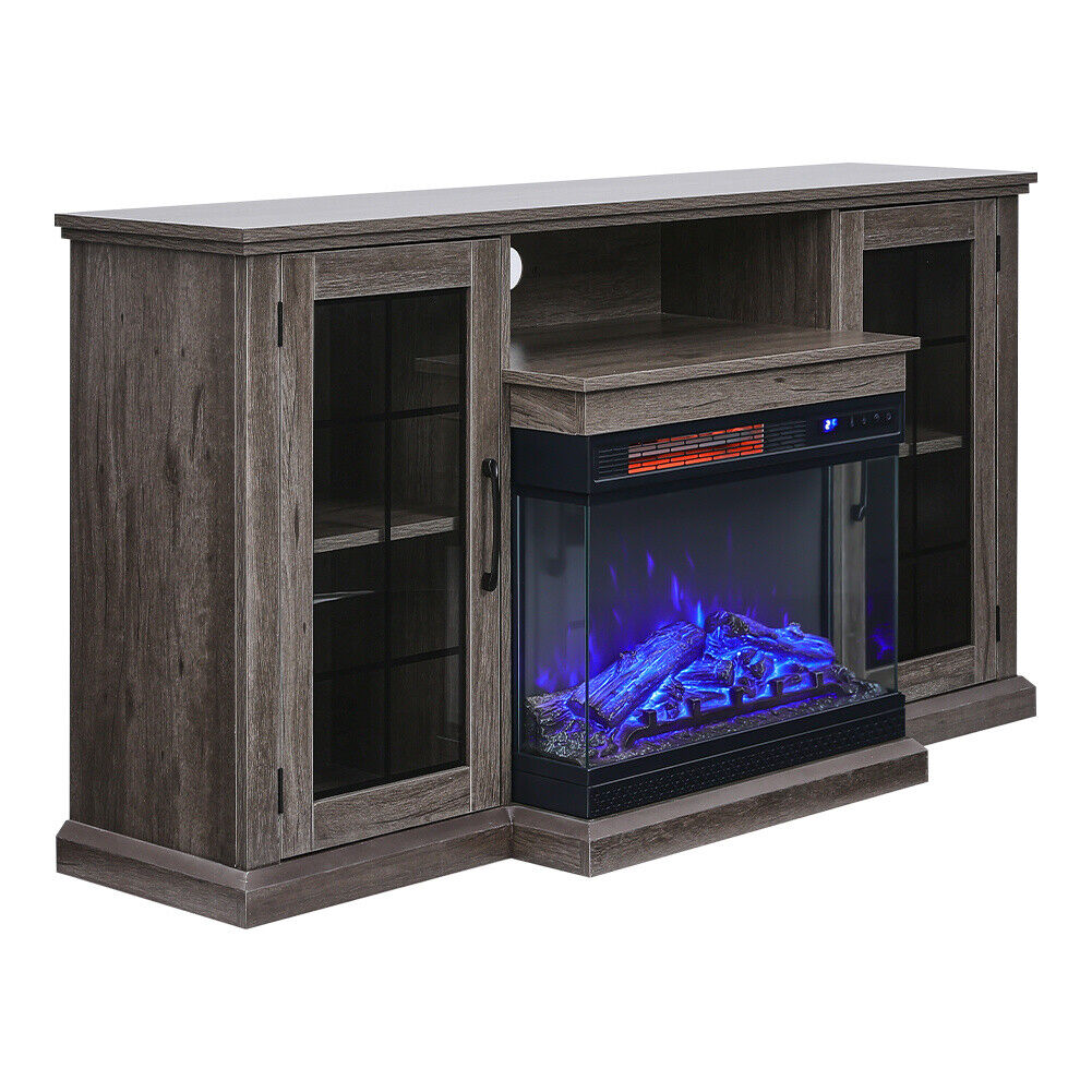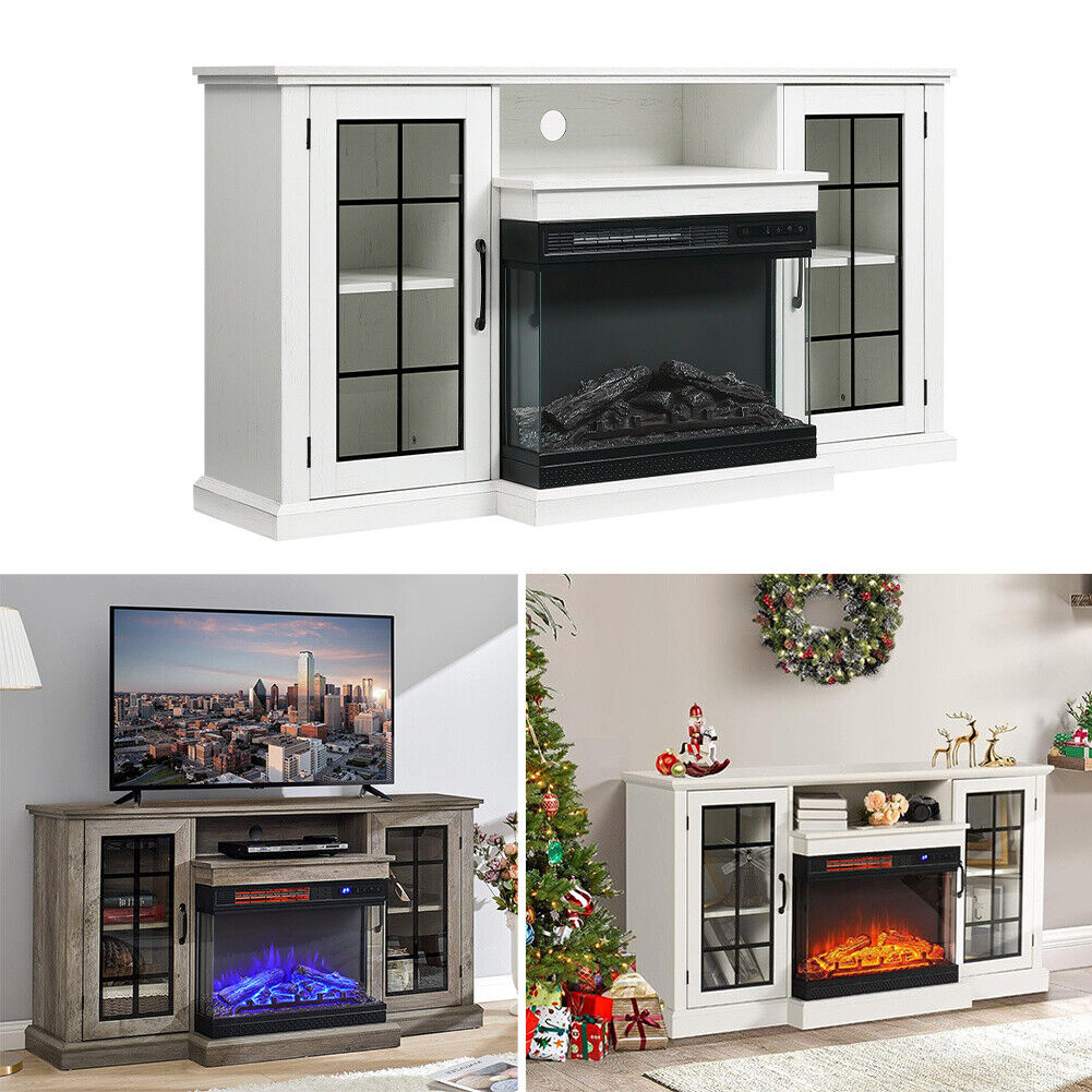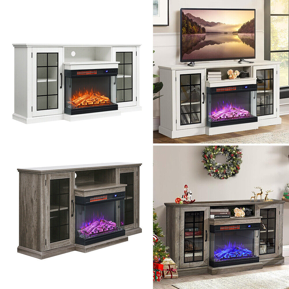 Electric Insert Fireplace Heater Stove &TV Stand Cabinet LED 3Color Fire Remote
