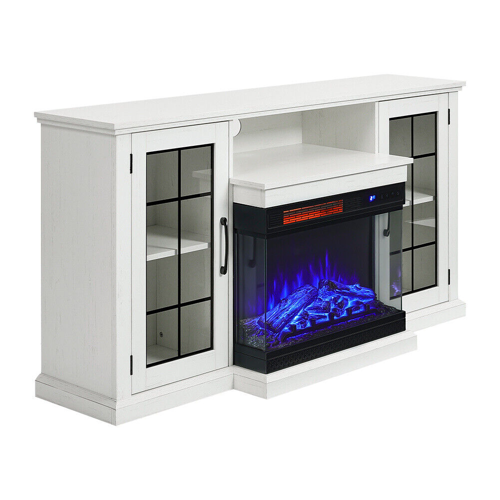 Adjustable Brightness, Adjustable Flame Colors, Adjustable Thermostat, Automatic Shut Off, Doors, LED Flames, On/Off Switch, Remote Control, Timer, TV Stand, With Viewing Window, Free Standing, Timer, LCD Display, 3 Colours 5 Brightness, 62 F to 82 F adjustable temperature, Decorative fake wood, Overheat protection, Log LED effect, With Storage