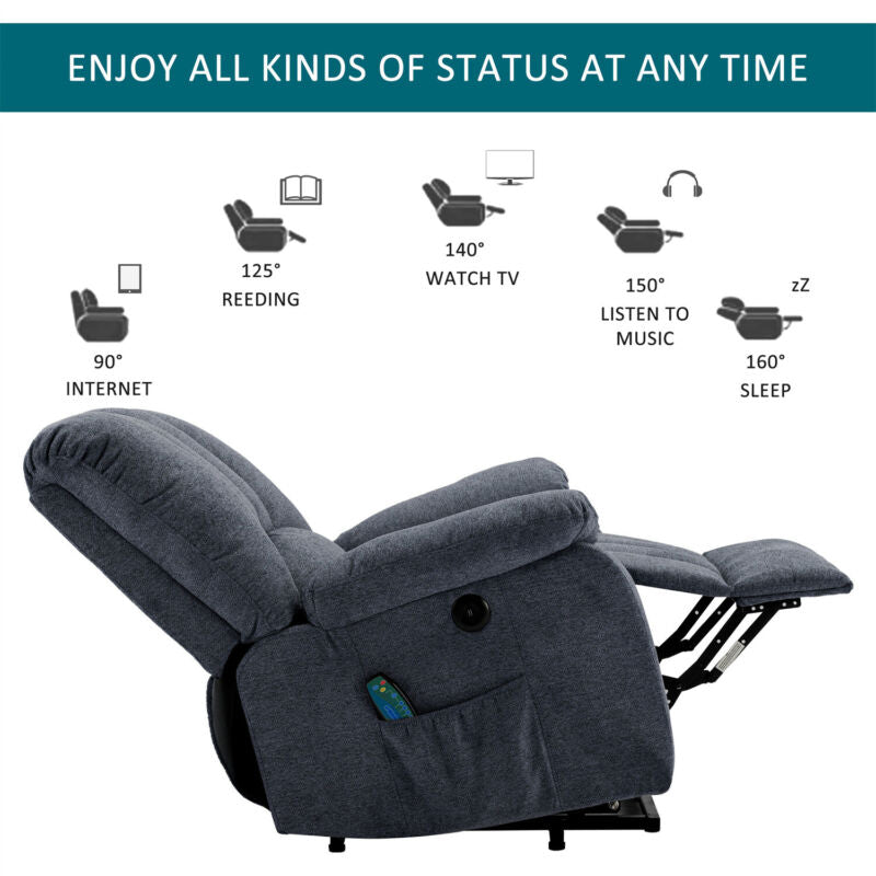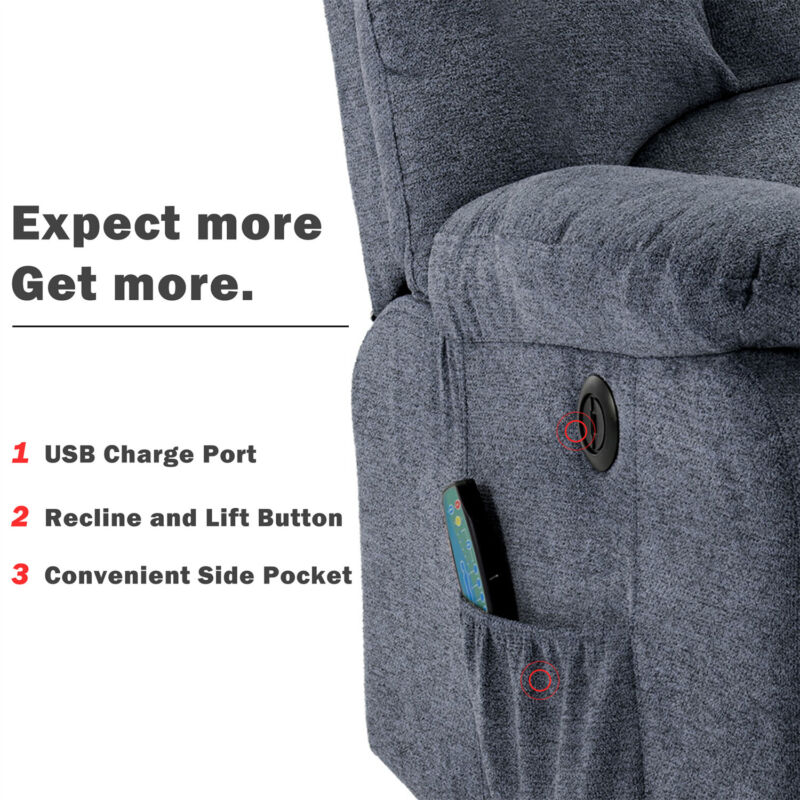 ELECTRIC POWER LIFT RECLINER CHAIR FABRIC SOFA WITH MASSAGE HEAT ARMCHAIR QC
