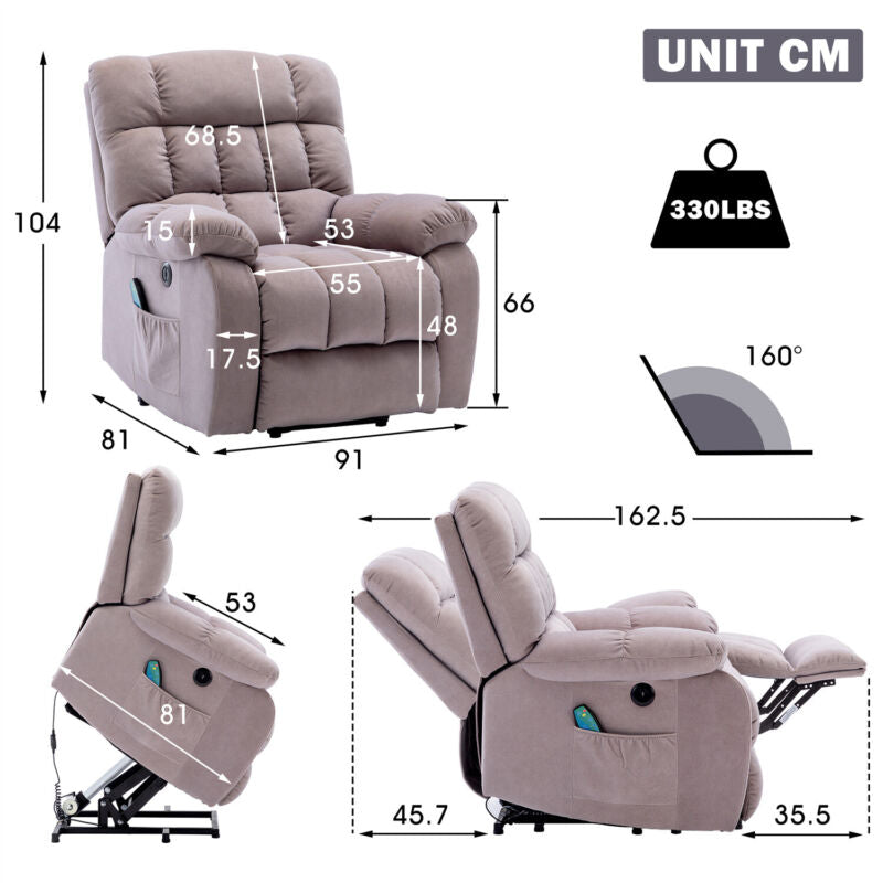 Electric Power Lift Recliner Chair Riser Sofa w/ Massage Heat Function Armchair